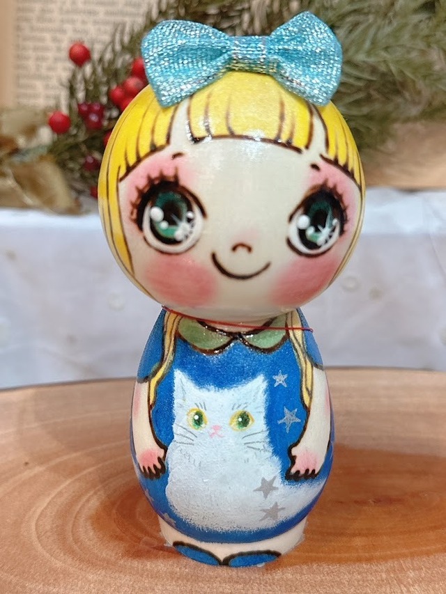 ハンドメイド 木製こけしちゃん(ネコ)14【cokets】