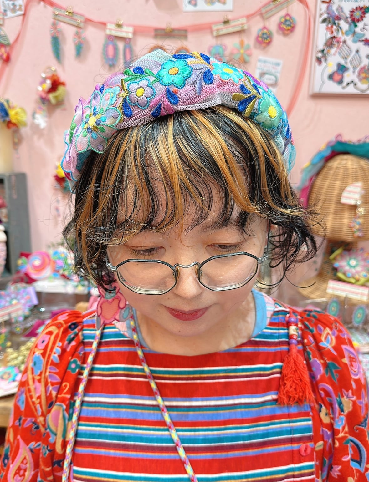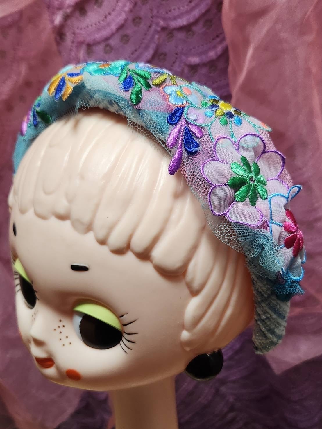 大きなお花のレースを手染めした、一点ものカチューシャです。