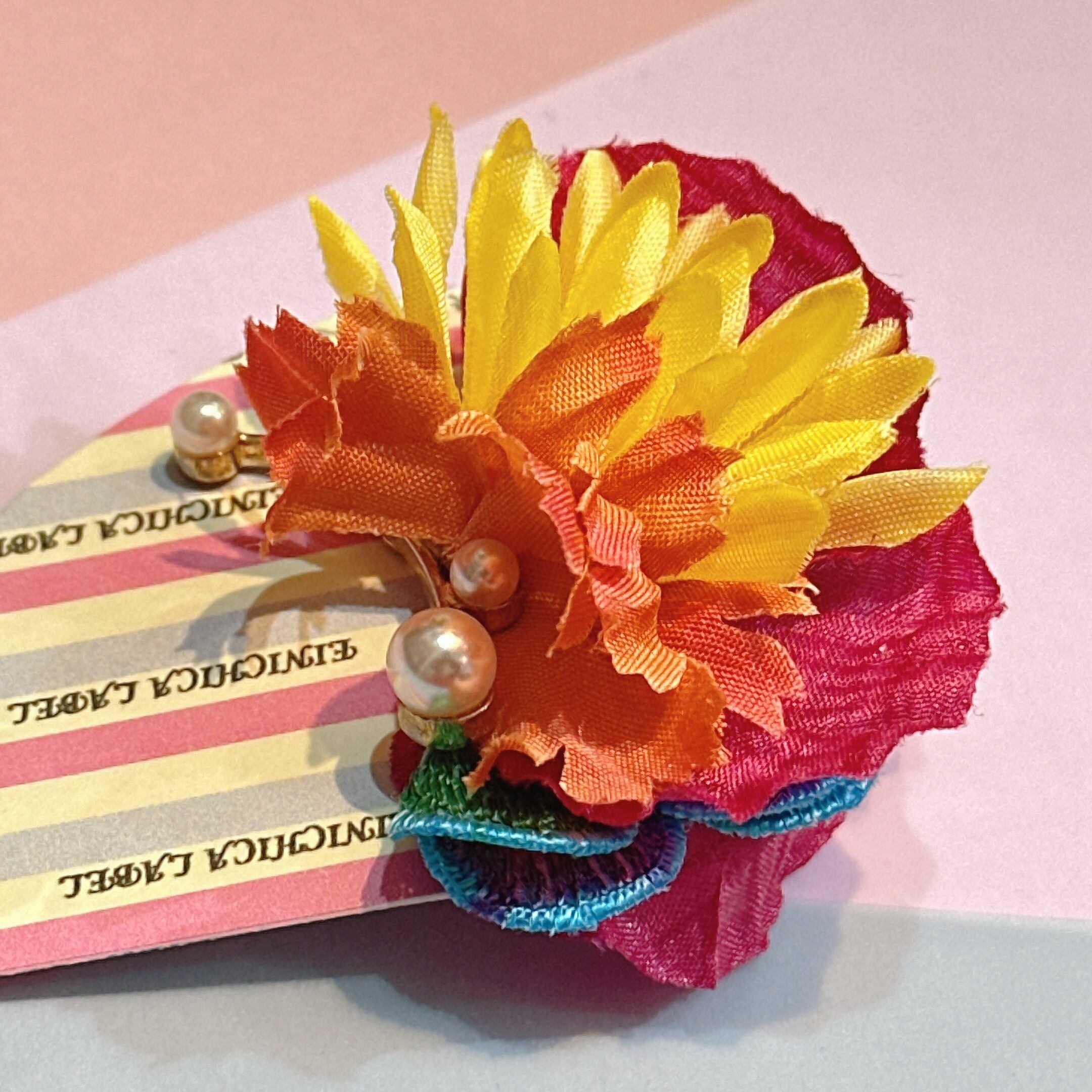 ひとつひとつが手染めしされた、カラフルなレースモチーフのピアス・イヤリングです。(パーツ交換可能です)