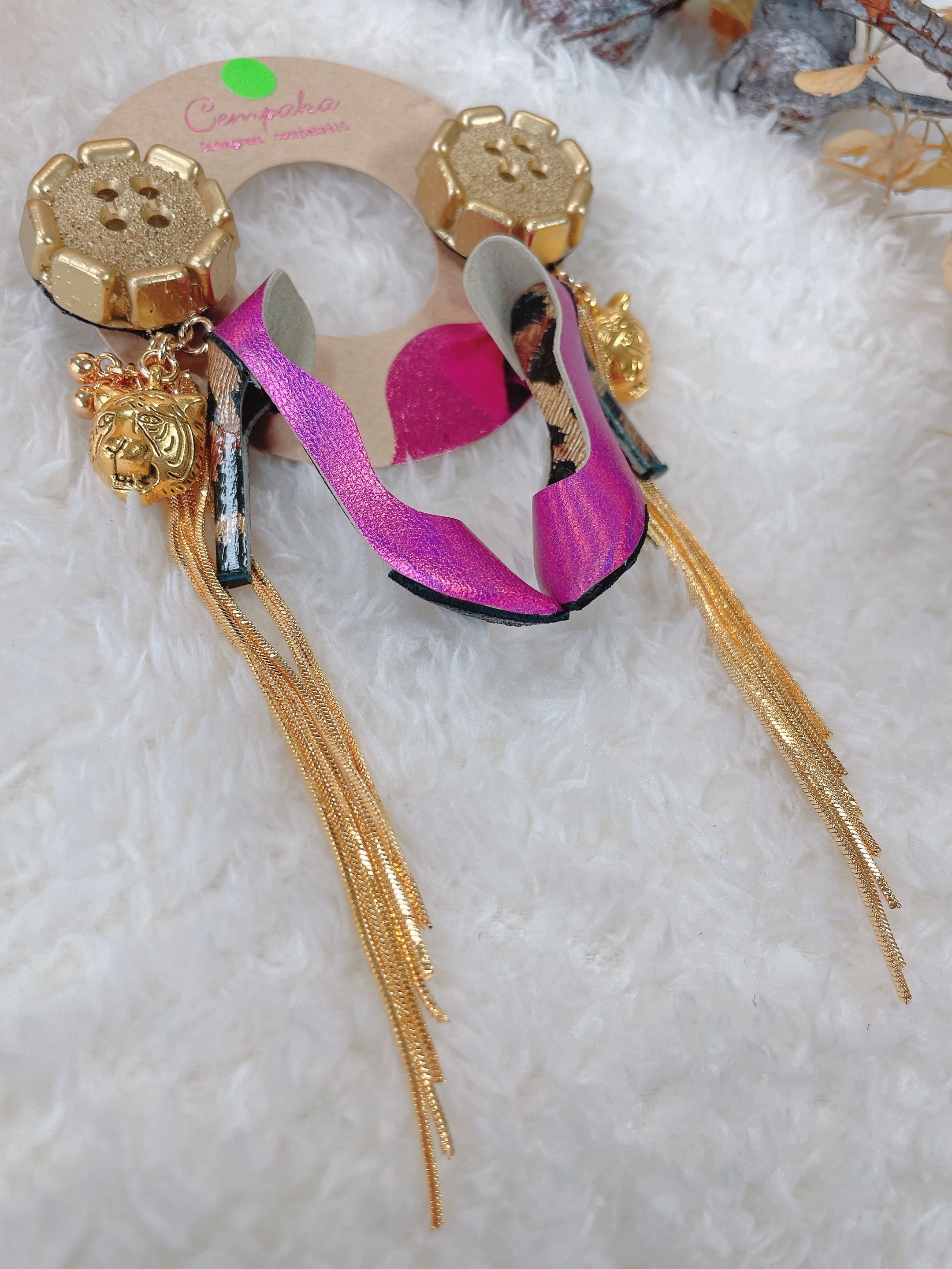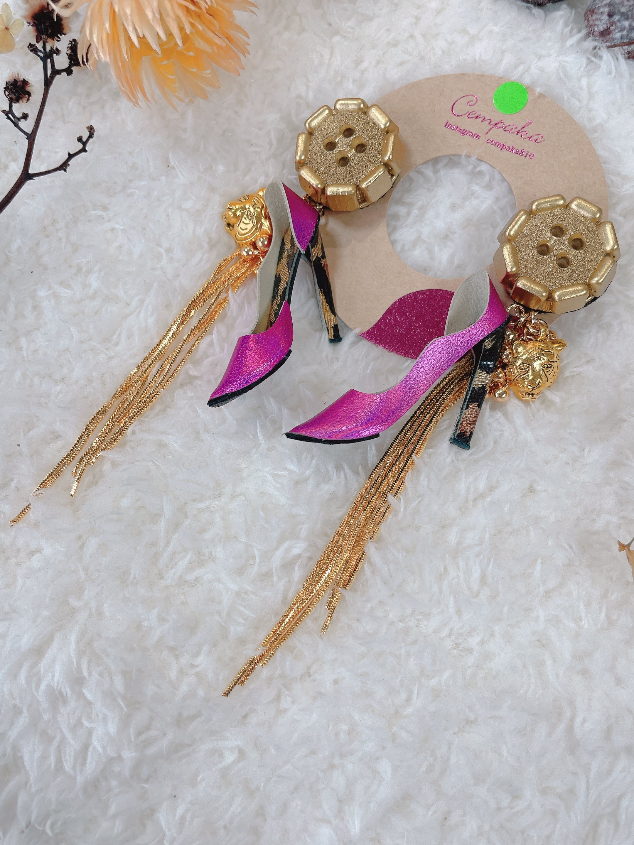 ハイヒールピアス 立体ボタントラモチーフ付き【cempaka】