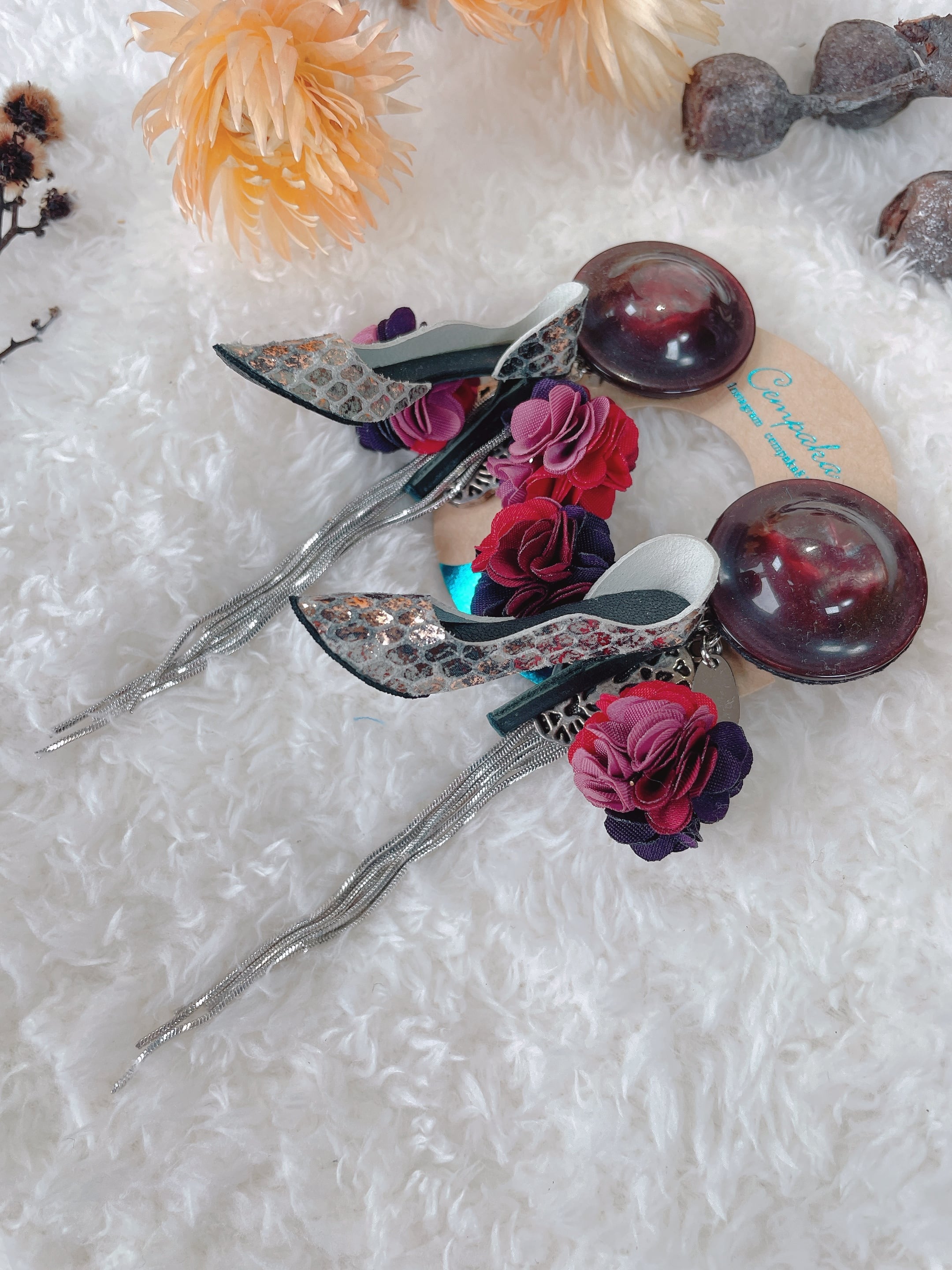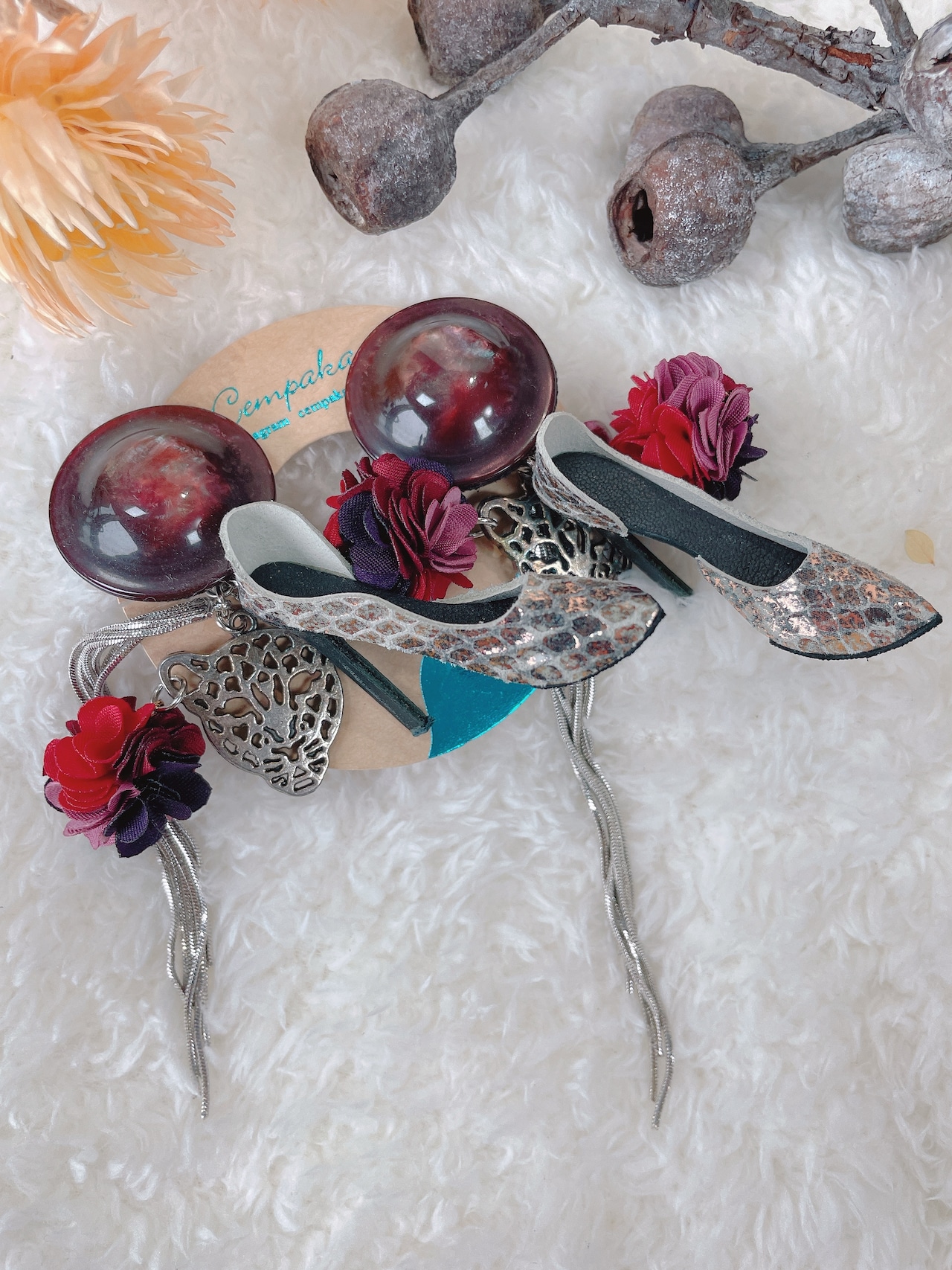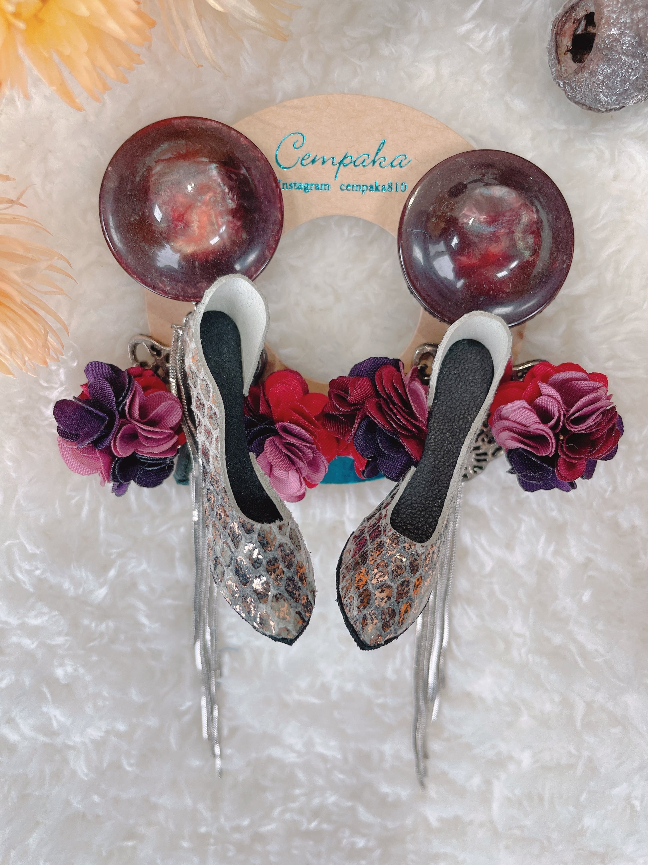 ハイヒールイヤリング ポンポンと豹【cempaka】