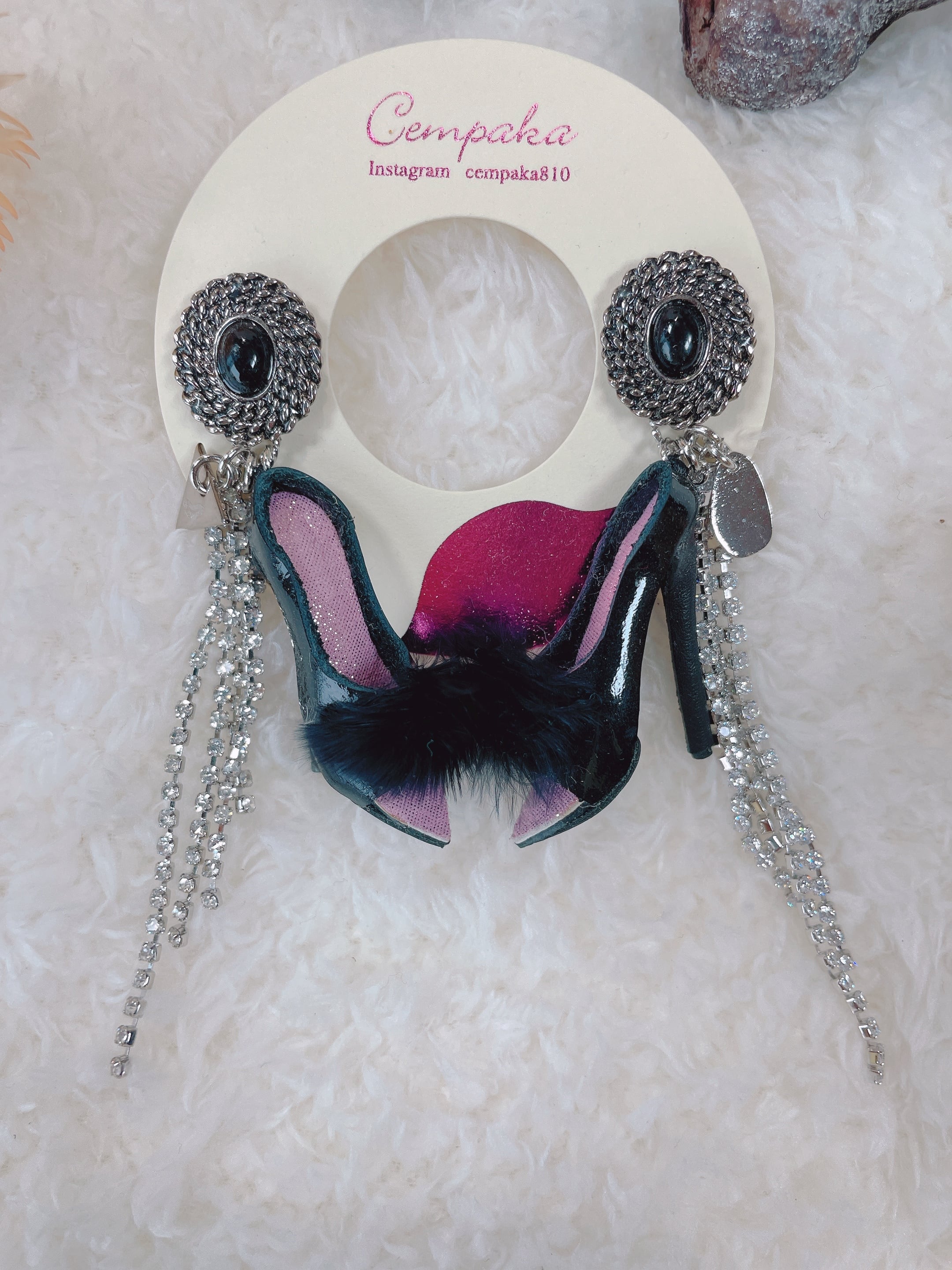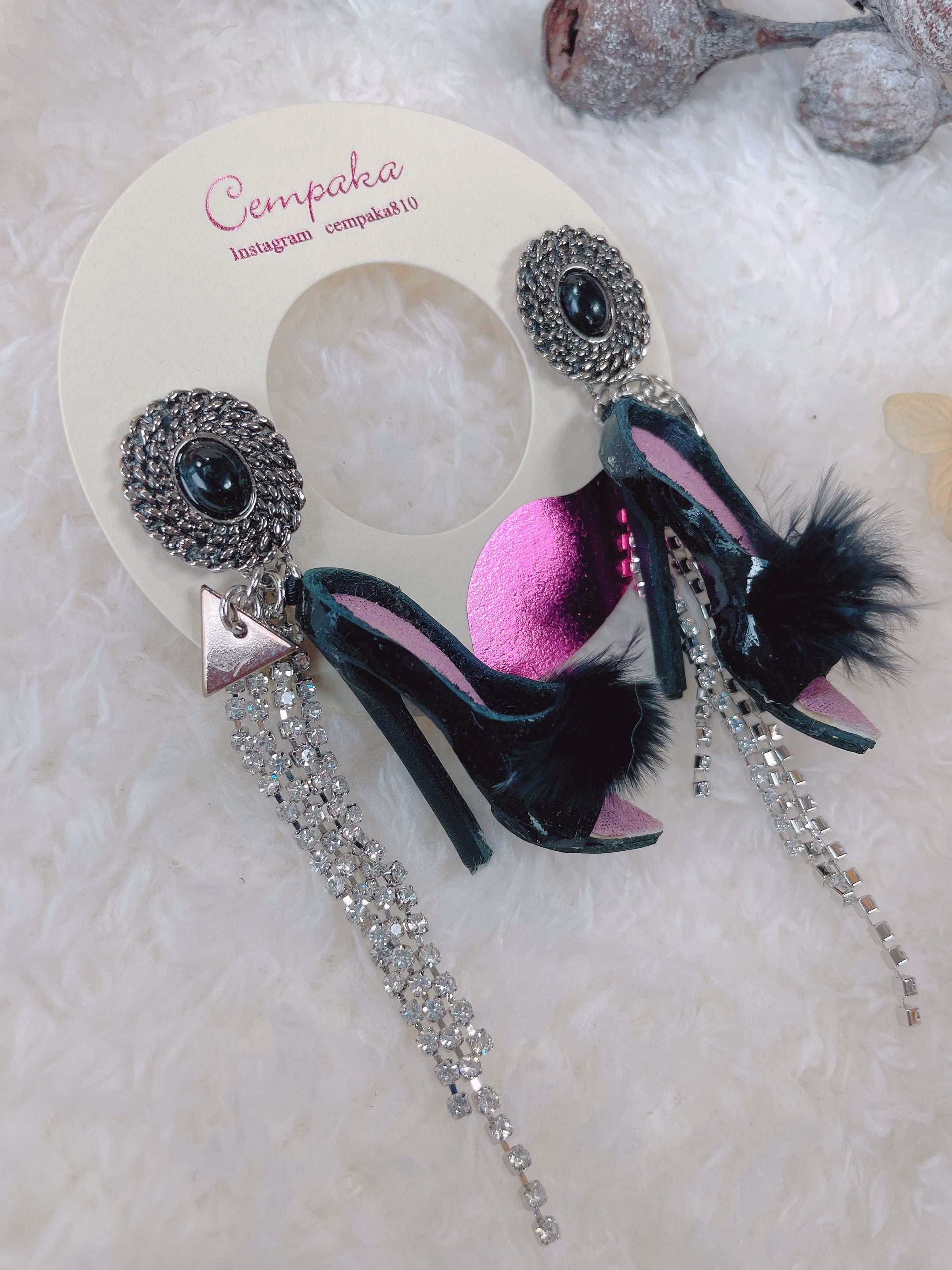 ハイヒールピアス ミュールブラックストーン【cempaka】