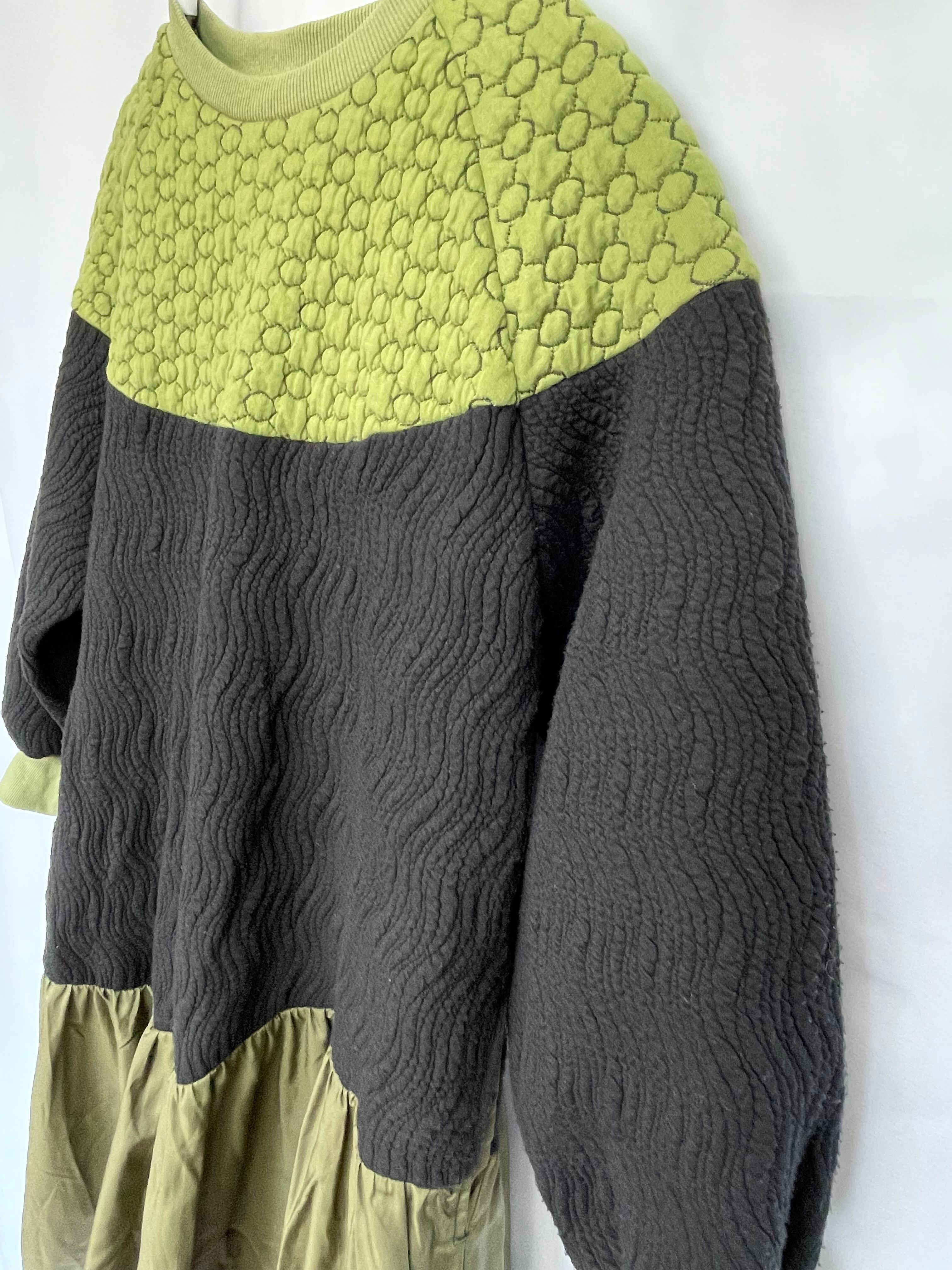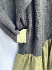 “ジャガードとキルト、サテンが織りなす贅沢なワンピース”