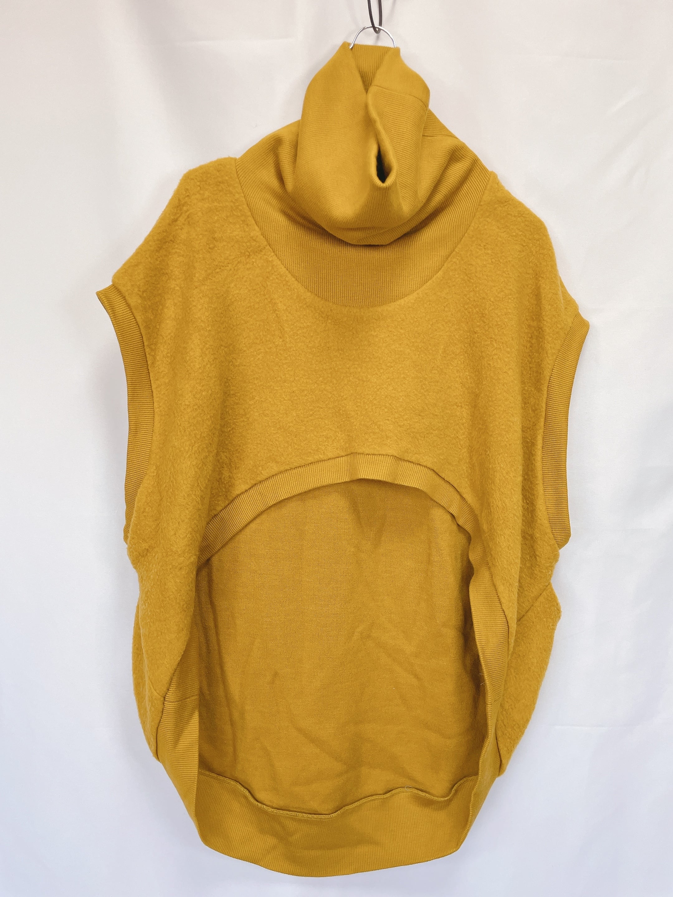 “シンプルながらも魅力的なハイネックノースリーブニット”