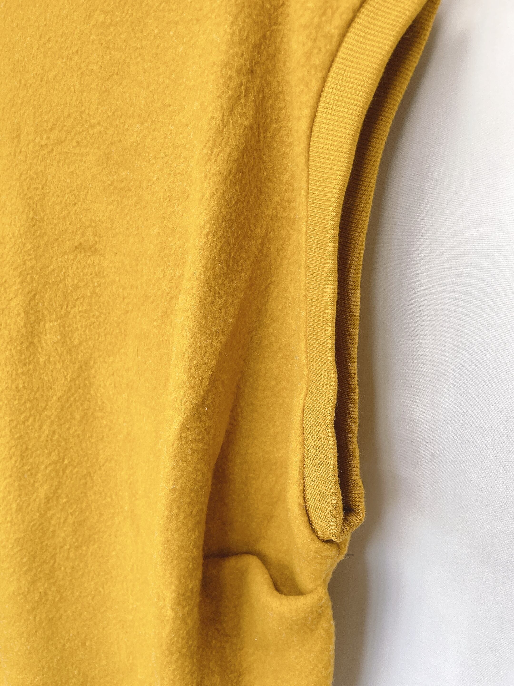 さっぱりとした印象ながら、首元のハイネックが洗練された雰囲気を演出し、日常のスタイルにアクセントを加えます。