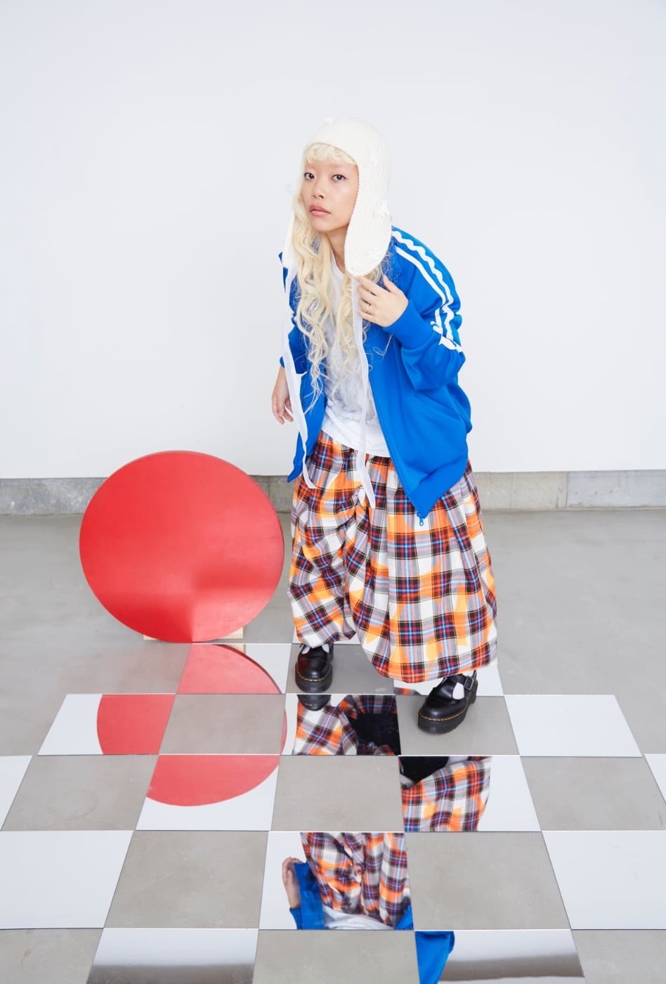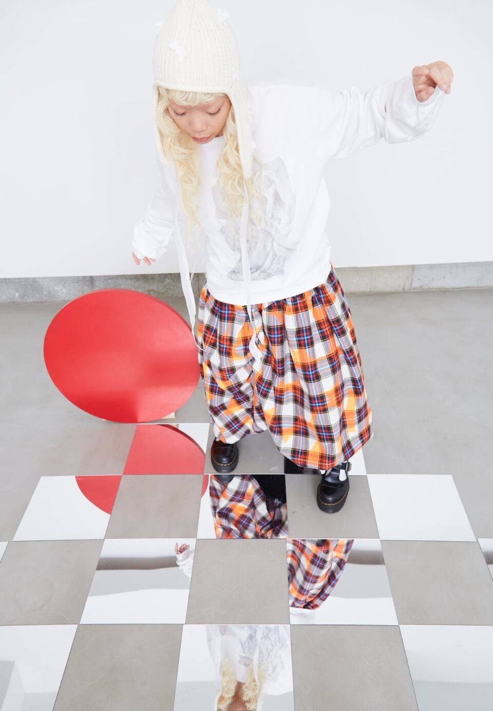 ○ model / Akane 153cm(col.ORANGE-MULTI・RED-BLACK / size. F2 着用)
