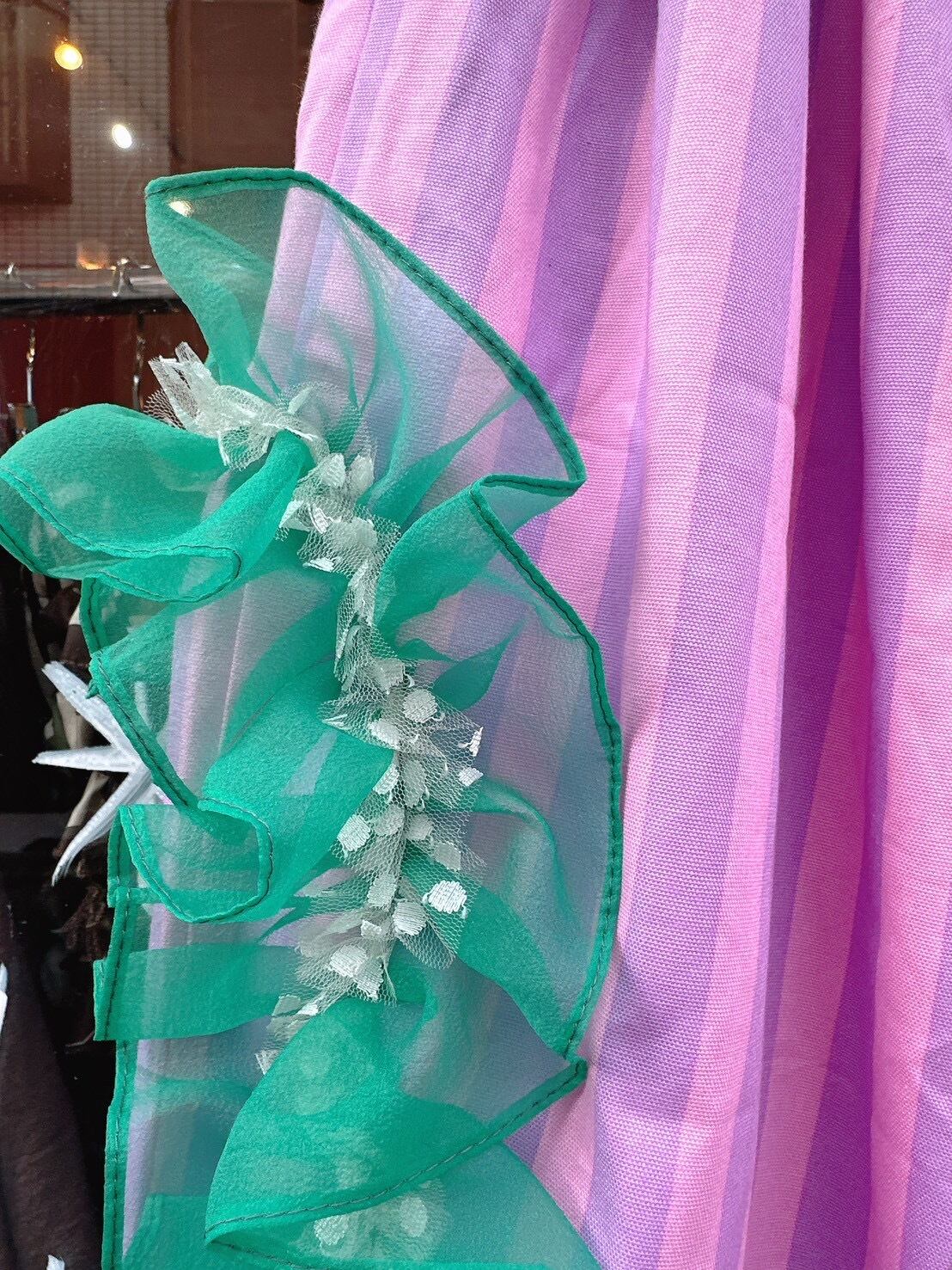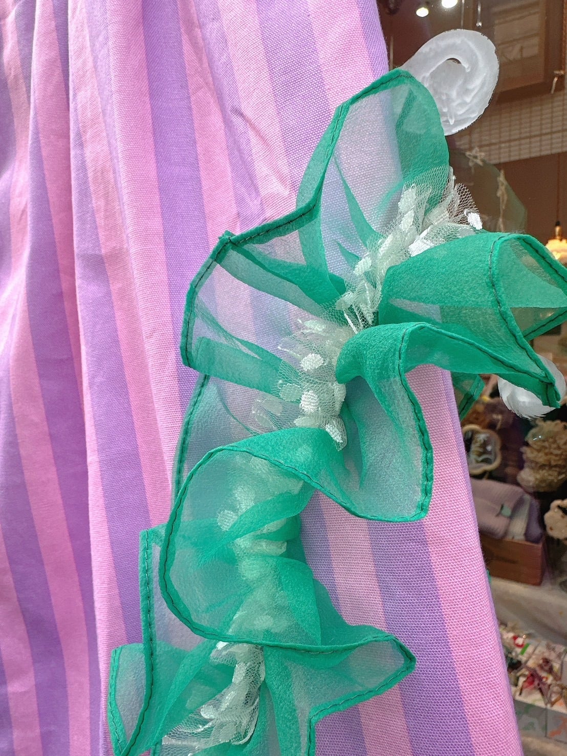 ハンドメイドサイドフリルパンツ(ピンク×パープル×グリーンフリル)【capribird】