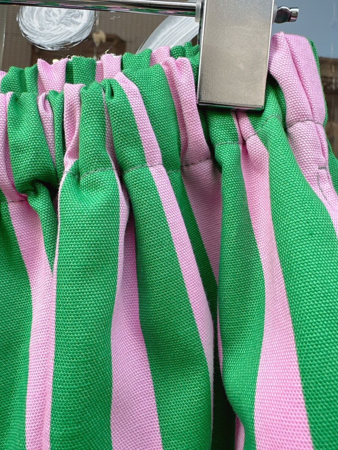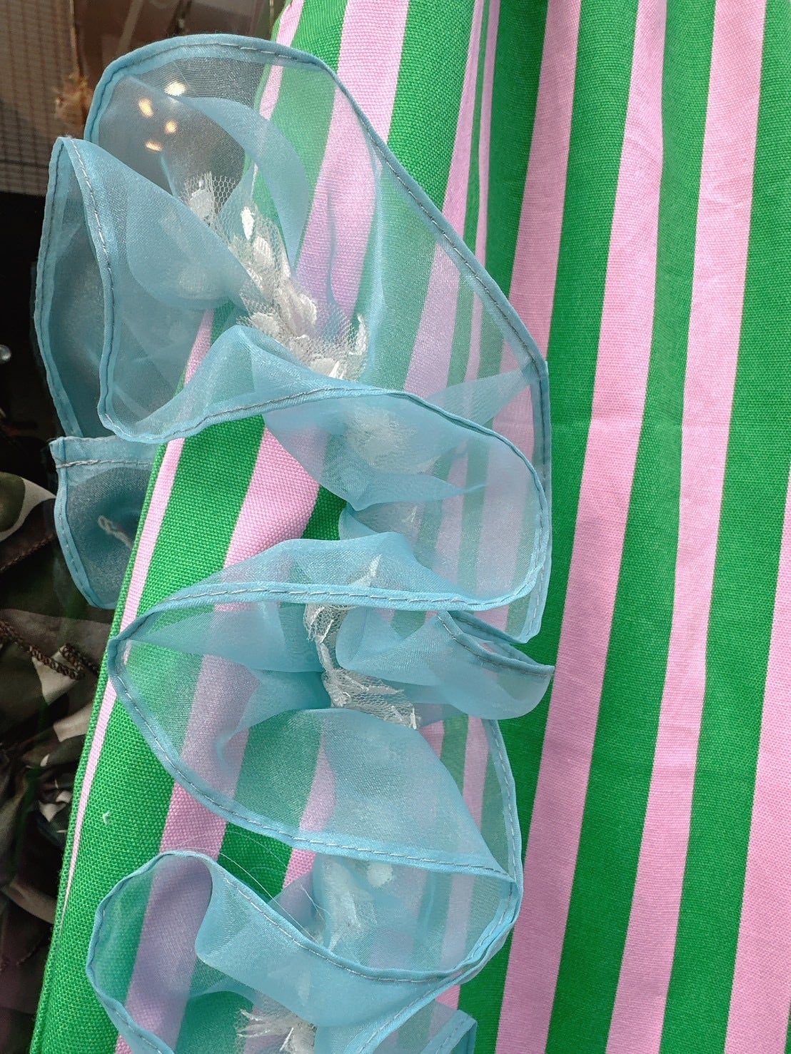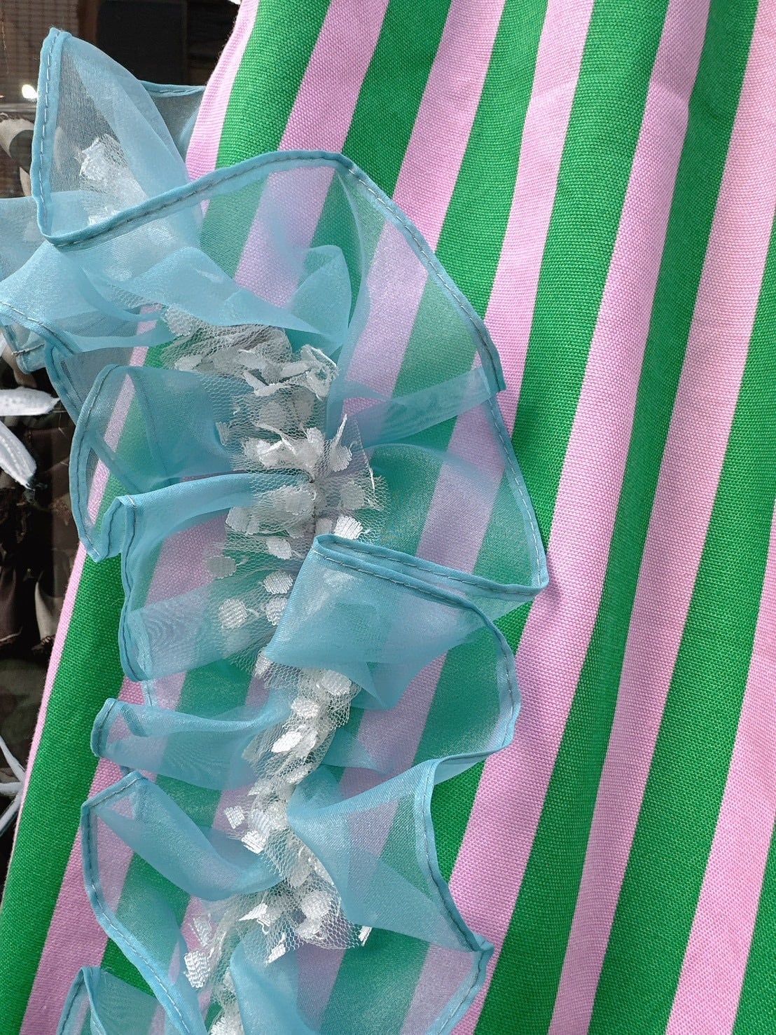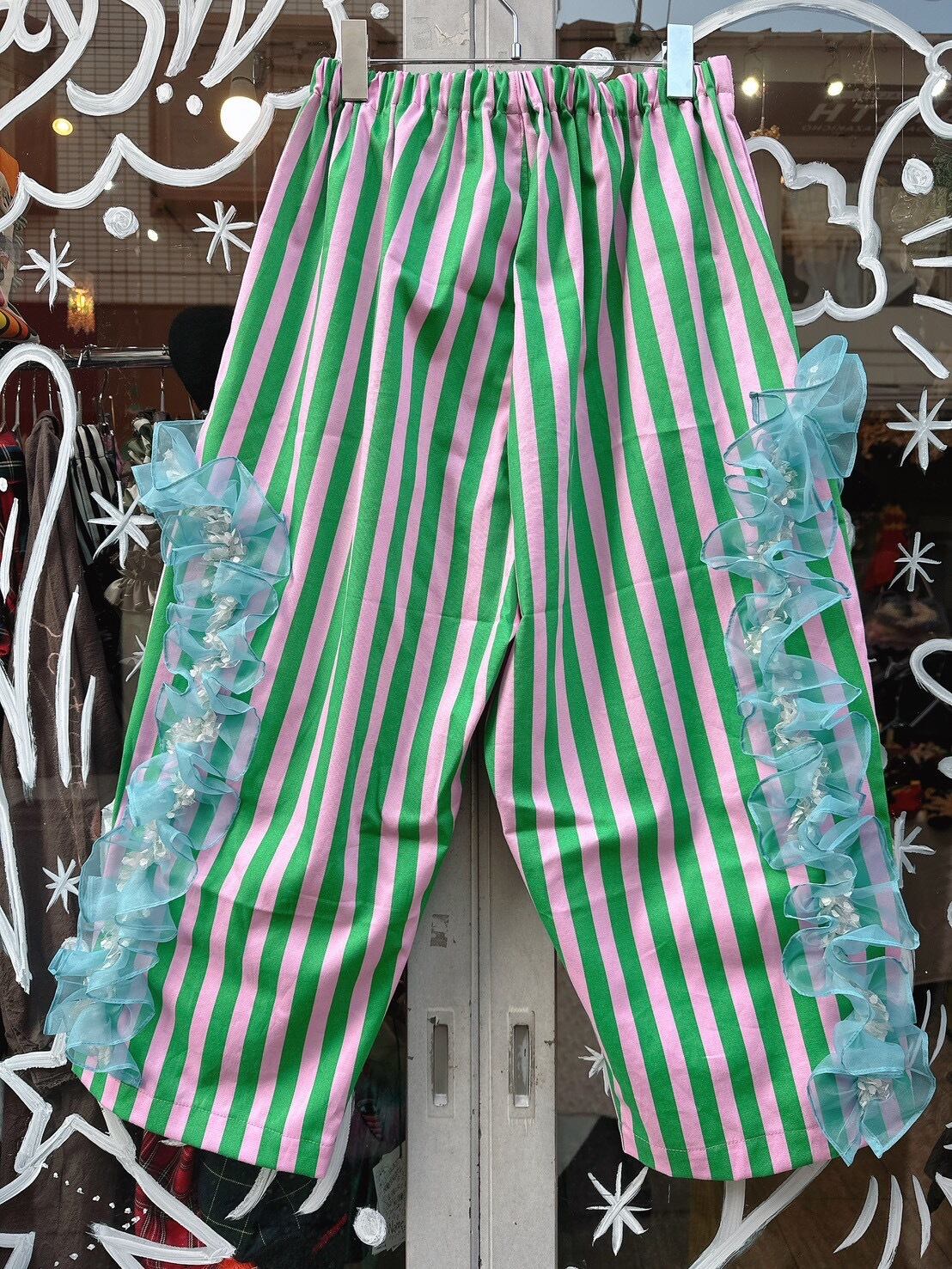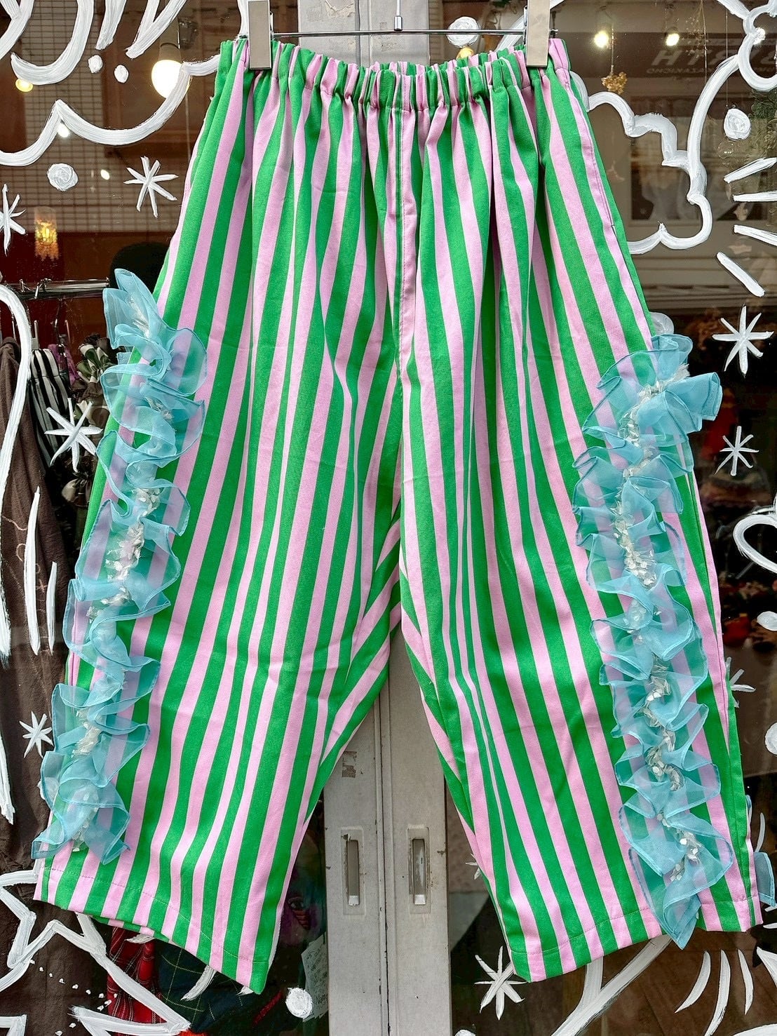 ハンドメイドサイドフリルパンツ(グリーン×ピンク×ブルーフリル)【capribird】