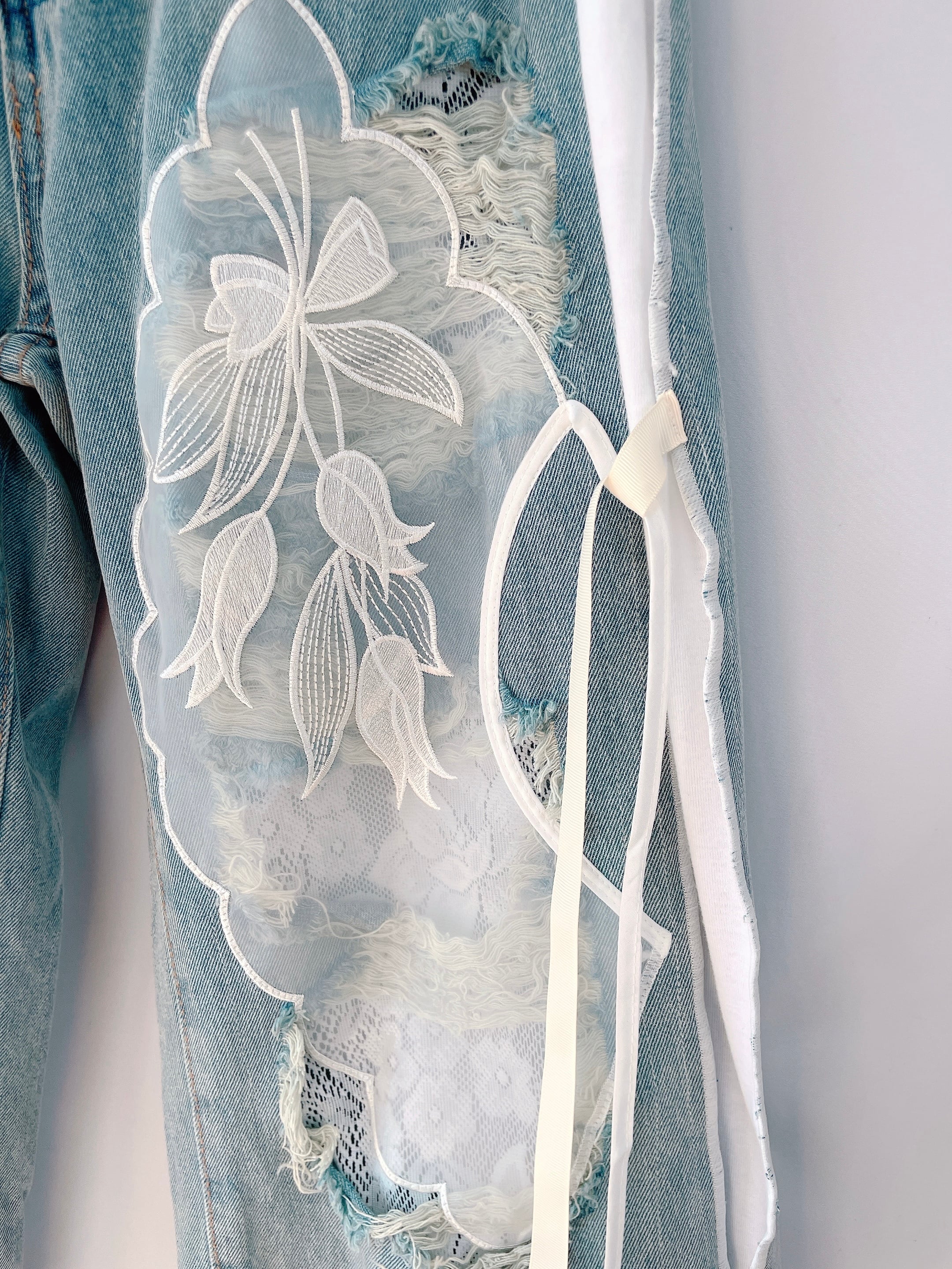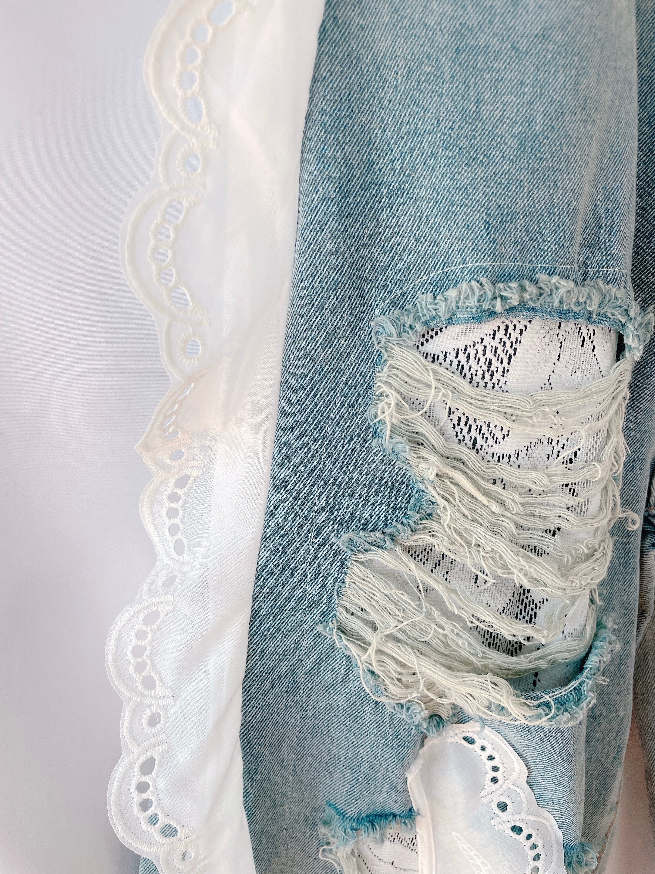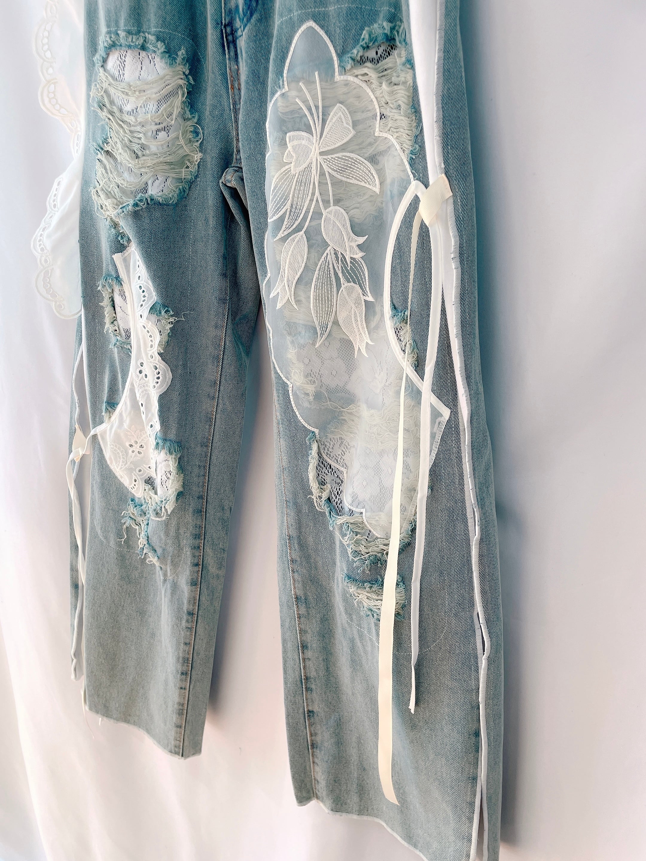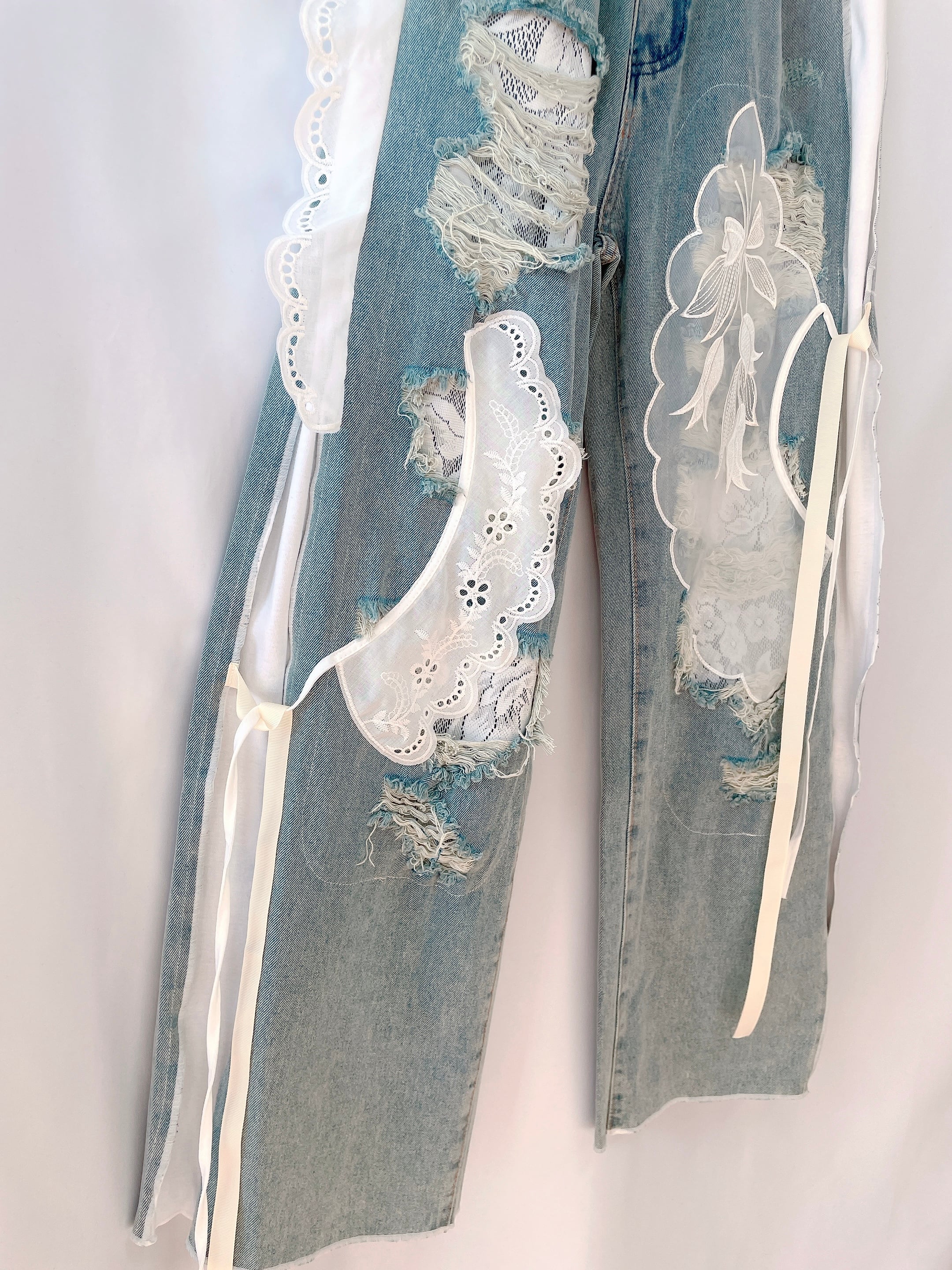 ■個性を楽しむリメイクレースデニムパンツ【Mothers made】
