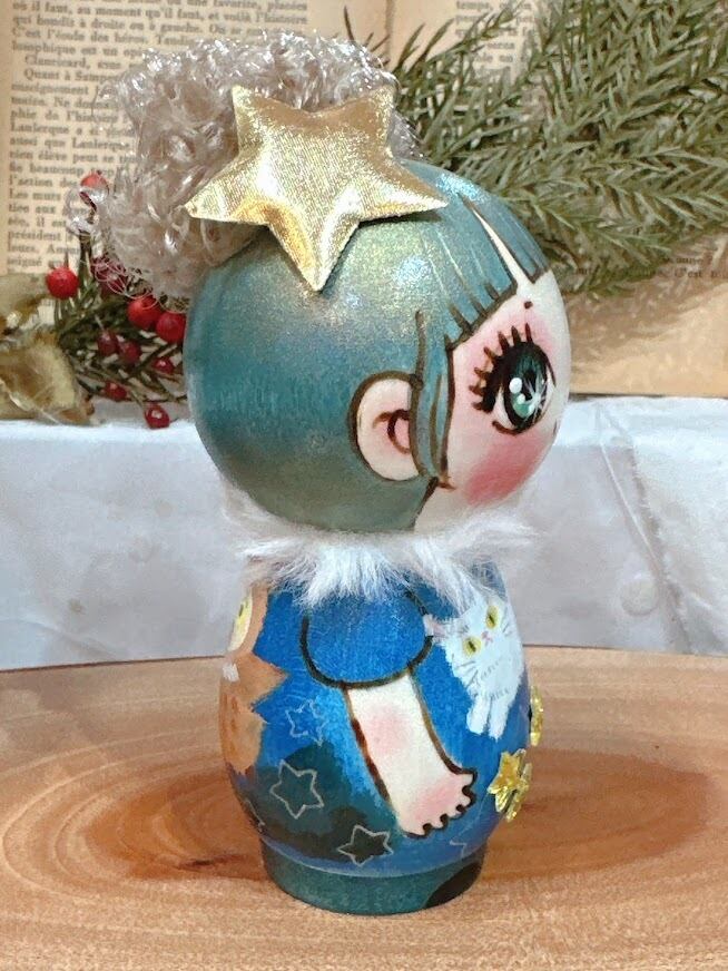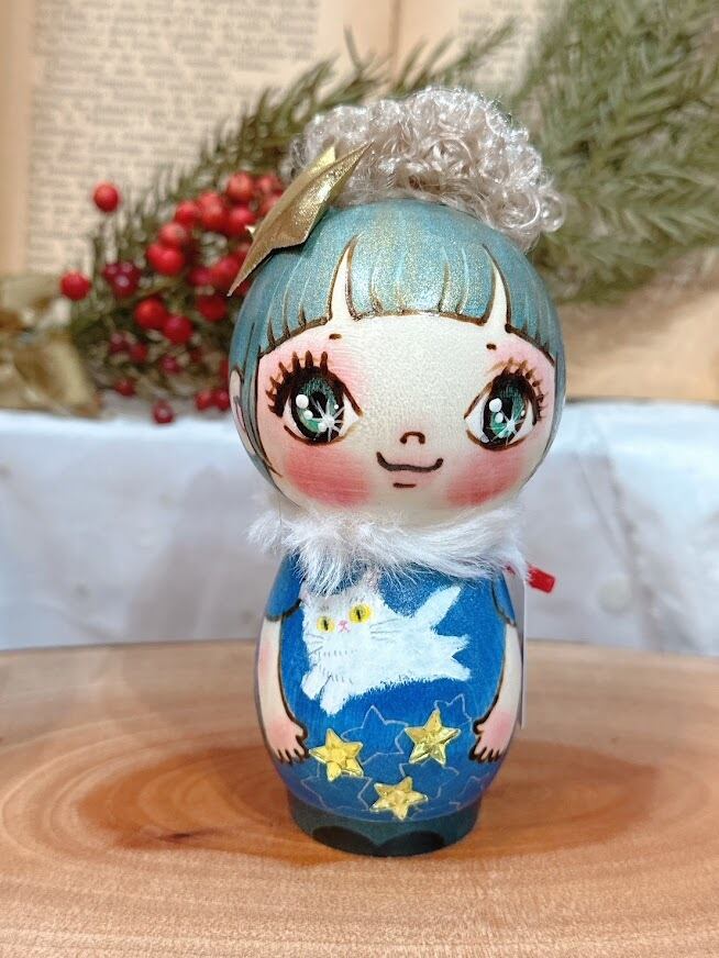 ハンドメイド 木製こけしちゃん(ネコ)2【cokets】