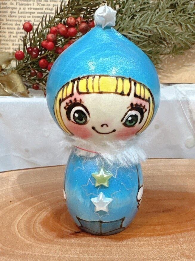ハンドメイド 木製こけしちゃん(星)4【cokets】