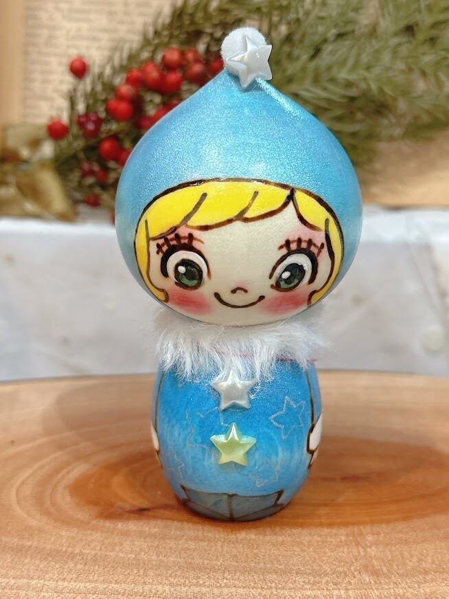 ハンドメイド 木製こけしちゃん(星)6【cokets】