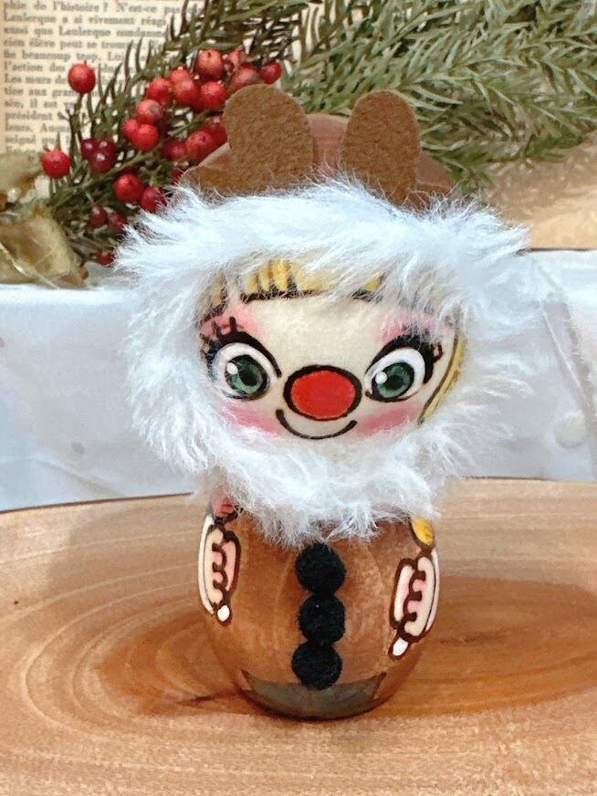 ハンドメイド 木製こけしちゃん(トナカイ)7【cokets】