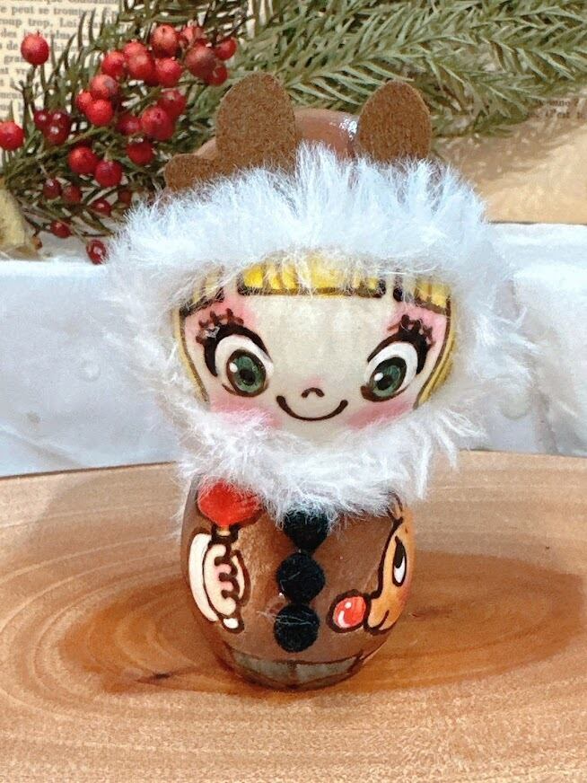 ハンドメイド 木製こけしちゃん(トナカイ)8【cokets】