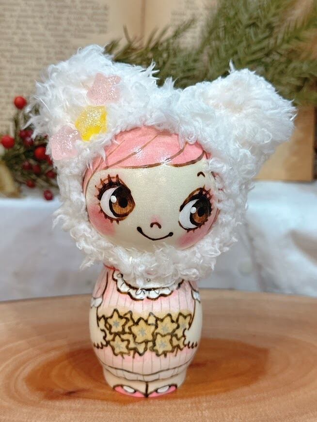 ハンドメイド 木製こけしちゃん(ネコ)9【cokets】