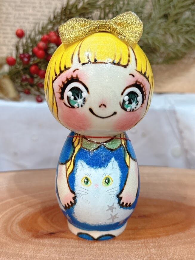 ハンドメイド 木製こけしちゃん(ネコ)12【cokets】
