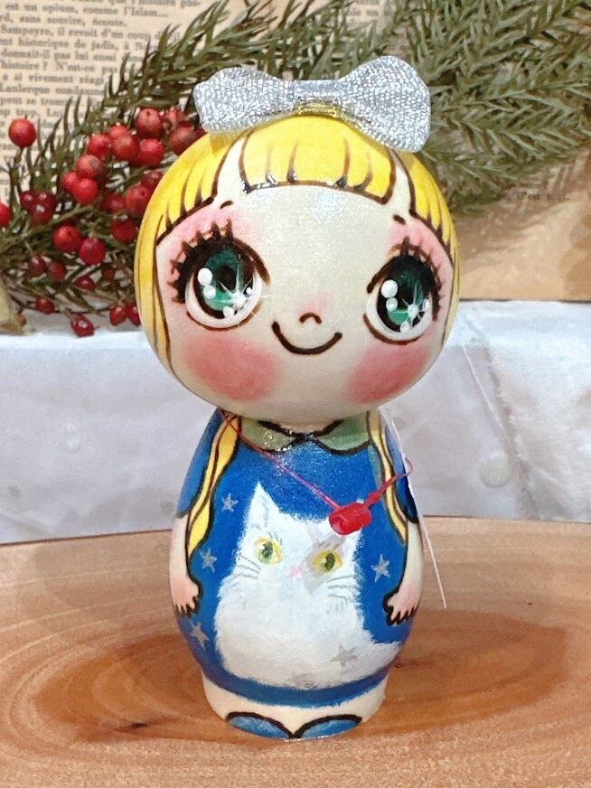 ハンドメイド 木製こけしちゃん(ネコ)13【cokets】