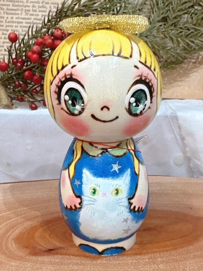 ハンドメイド 木製こけしちゃん(ネコ)14【cokets】
