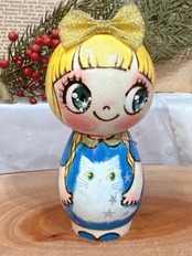 ハンドメイド 木製こけしちゃん(ネコ)15【cokets】