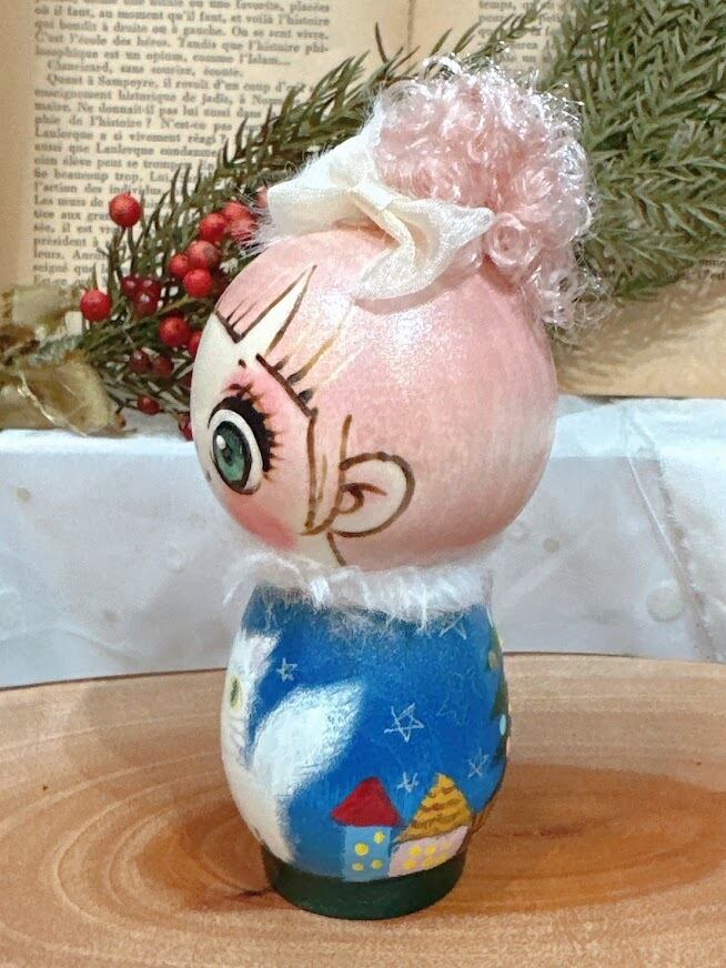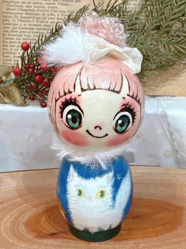 ハンドメイド 木製こけしちゃん(ネコ)18【cokets】