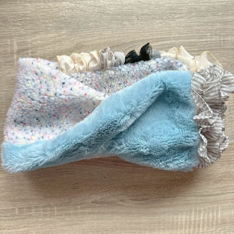 ふんわりとしたフリルが特徴のスヌードは、首周りを優しく包み込み、ぬくもりを与えてくれます。軽やかな素材感で、カジュアルなコーディネートにもぴったり。スタイリングに華やかさをプラスしつつ、シンプルな服装も引き立てるアイテムです。