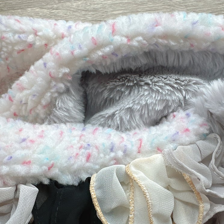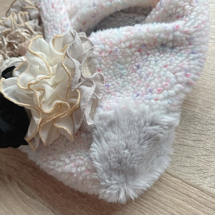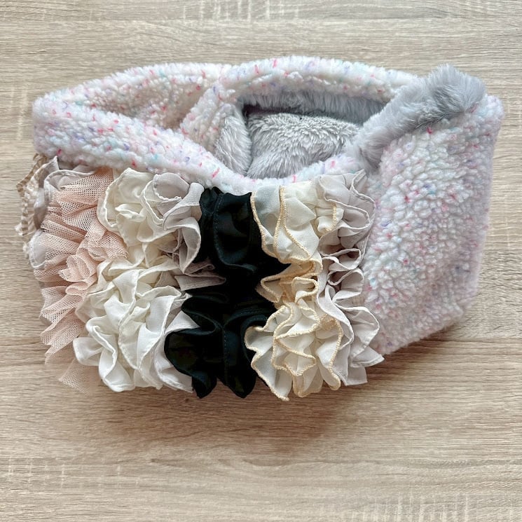 ふんわりとしたフリルが特徴のスヌードは、首周りを優しく包み込み、ぬくもりを与えてくれます。軽やかな素材感で、カジュアルなコーディネートにもぴったり。スタイリングに華やかさをプラスしつつ、シンプルな服装も引き立てるアイテムです。