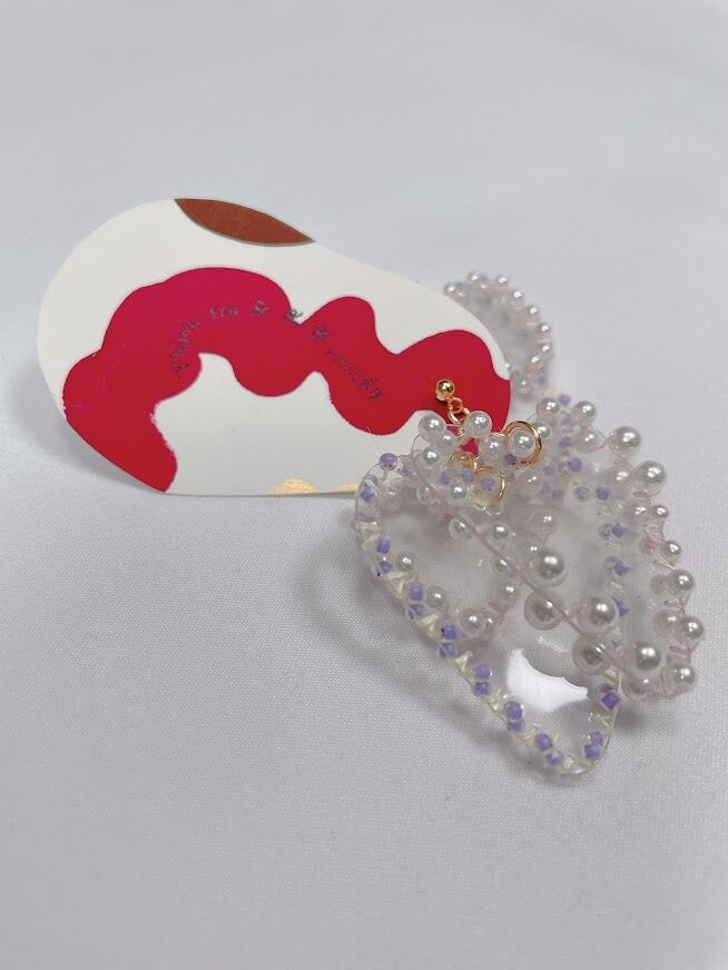 ハンドメイド ハートピアス(片耳)②【ハナニミズヲ】