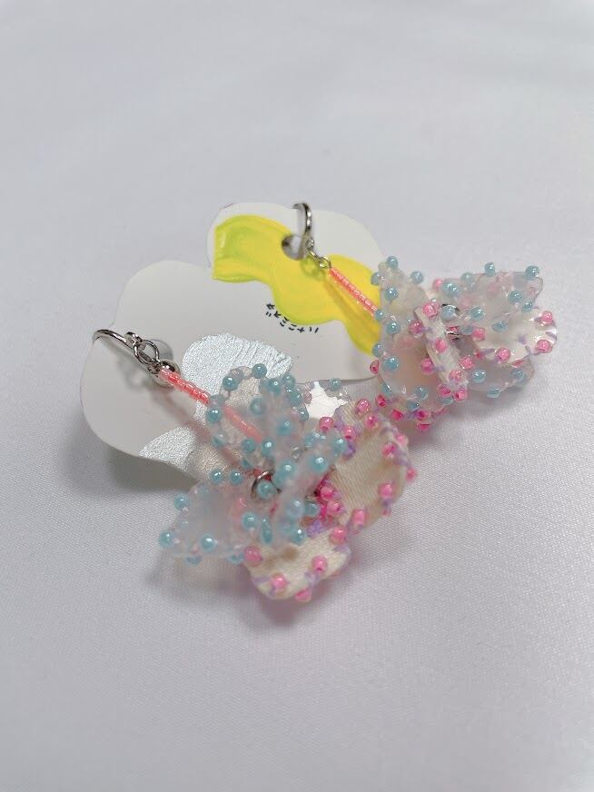 ハンドメイド 花びらイヤリング①【ハナニミズヲ】