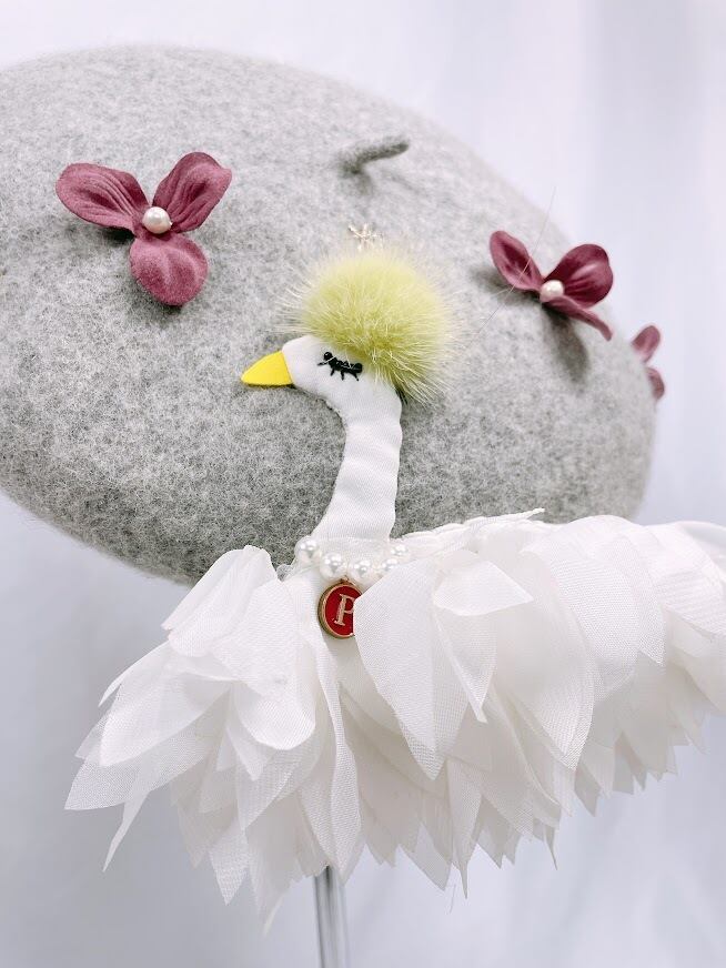 愛らしいスワンモチーフのベレー帽は、あなたのスタイルに優雅さをプラスする特別なアイテムです。ひとつひとつ丁寧にハンドメイドで仕上げられたこのベレー帽は、日常のコーディネートに個性的なエッセンスを添え、特別なシーンでもその魅力を発揮します!カジュアルなお出かけから、おしゃれな集まりまで、幅広くお使いいただけます。
