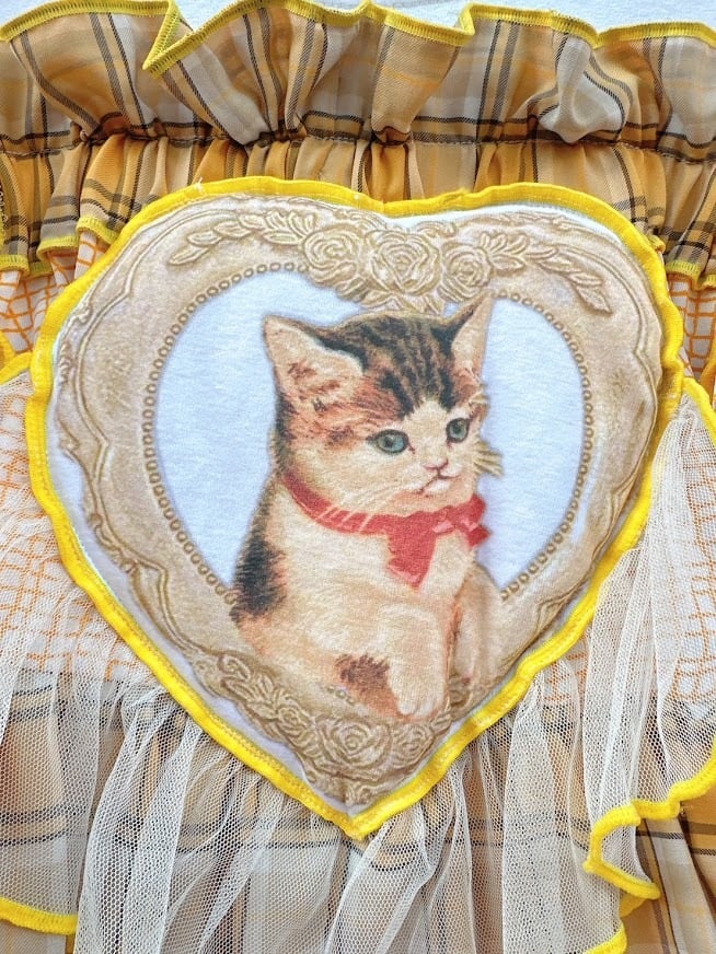 ハンドメイド リメイクフリルトップス ネコ【mothers made】