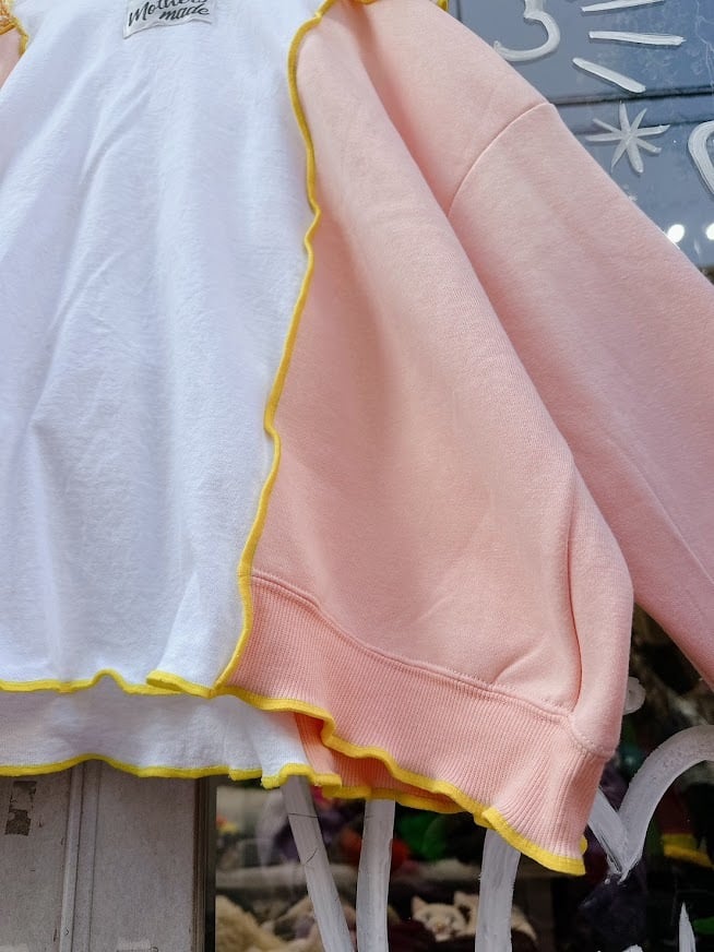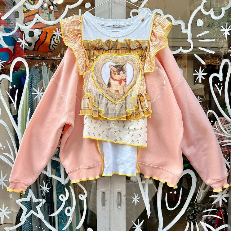 愛らしいネコモチーフがアクセントのリメイクフリルトップスは、あなたのスタイルに遊び心をプラスする特別なアイテムです。ひとつひとつ丁寧にハンドメイドで仕上げられたこのトップスは、日常のコーディネートに個性的なエッセンスを添え、特別なシーンでもその魅力を発揮します!カジュアルなお出かけからお友達との集まりまで、幅広くお使いいただけます。