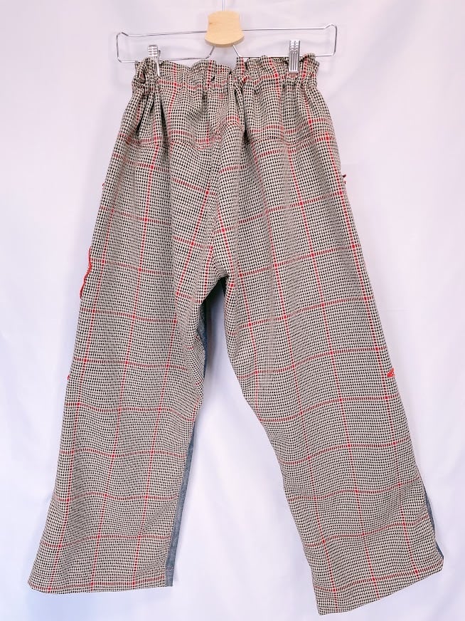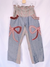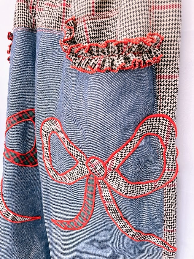 ハンドメイド ペアリボンチェックデニムパンツ【mimi】