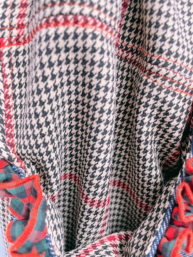 愛らしいペアリボンがポイントのチェックデニムパンツは、あなたのスタイルに遊び心と個性をプラスする特別なアイテムです。ひとつひとつ丁寧にハンドメイドで仕上げられたこのパンツは、日常のコーディネートに新たなエッセンスを添え、特別なシーンでもその魅力を発揮します!カジュアルなお出かけから友人との集まりまで、幅広くお使いいただけます。