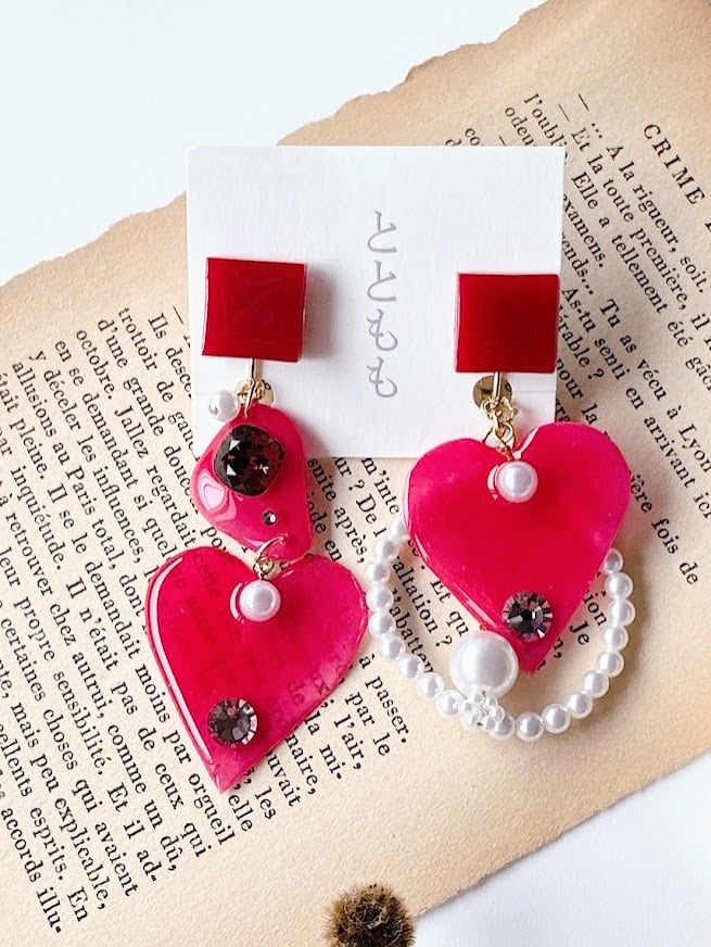 愛らしいハートモチーフが煌めくこのイヤリングは、あなたのスタイルに温もりと華やかさをプラスする特別なアイテムです。一つ一つ丁寧にハンドメイドされたこのイヤリングは、日常のコーディネートから特別なシーンまで、その魅力をしっかりと発揮します!シンプルなファッションに華やかさを添えるアクセントとして、さりげなく存在感を演出してくれます。