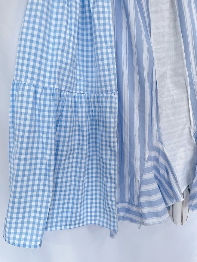 ハンドメイド リメイクストライプチェックスカート〈ブルー〉【Mothers made】