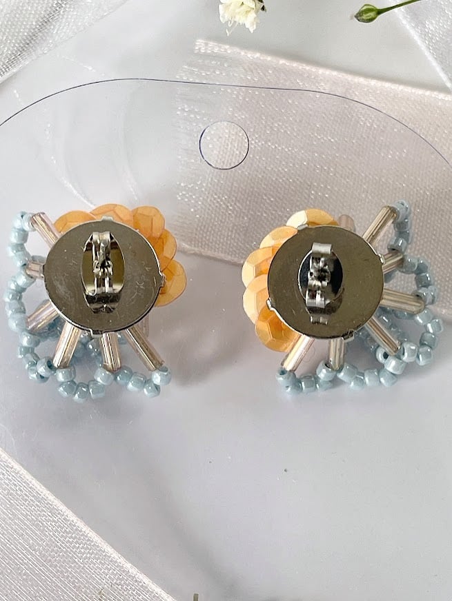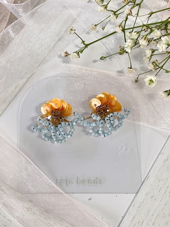 ハンドメイド Coralピアス〈オレンジ×ライトブルー〉【sep.beads】