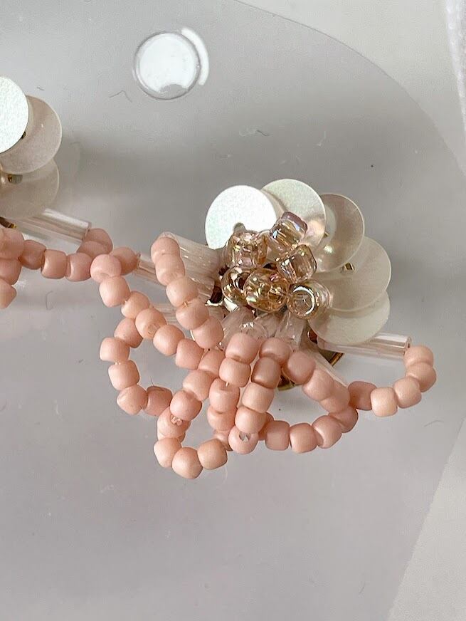 ハンドメイド Coralイヤリング【sep.beads】は、優しいホワイトと愛らしいピンクの鮮やかなコントラストが特徴のアクセサリーです。上品な色合いが顔周りを華やかに彩り、特別な日からカジュアルなお出かけまで幅広くご利用いただけるアイテムです!見る人の目を惹くこと必至です!