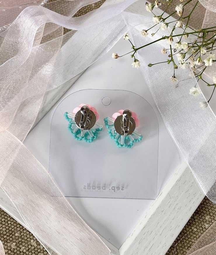 ハンドメイド Coralイヤリング【sep.beads】は、優しいピンクと爽やかなライトブルーの美しいハーモニーが特長のアクセサリーです。魅力的な色合いが顔周りを華やかに演出し、特別な日から日常のお出かけまで幅広くご利用いただけるアイテムです!見る人の視線を惹きつけること必至です!