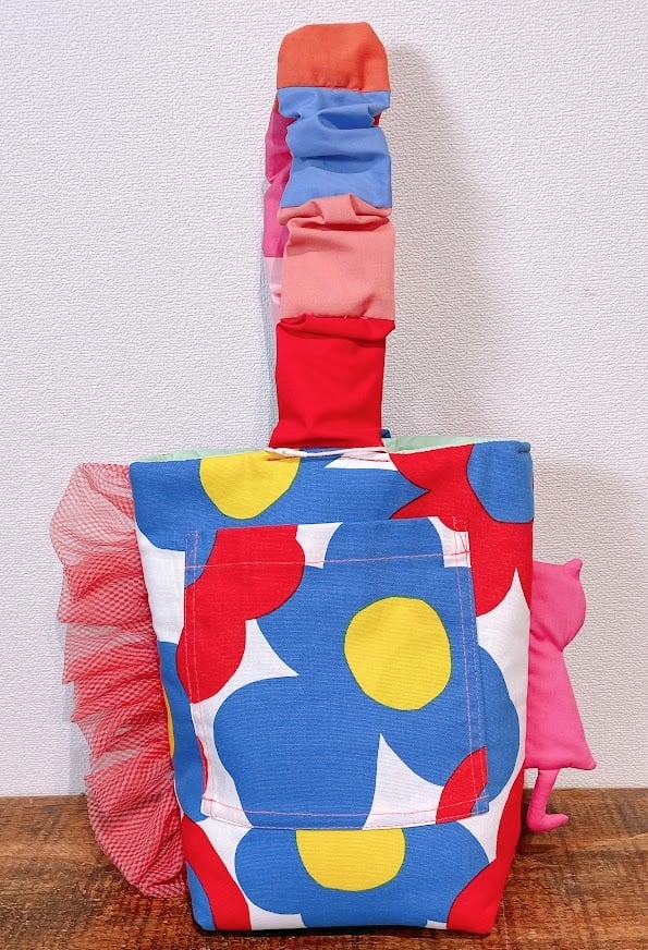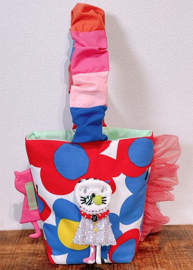 ハンドメイド おさんぽおしゃネコバッグ(赤×青×白)【pheacadh】