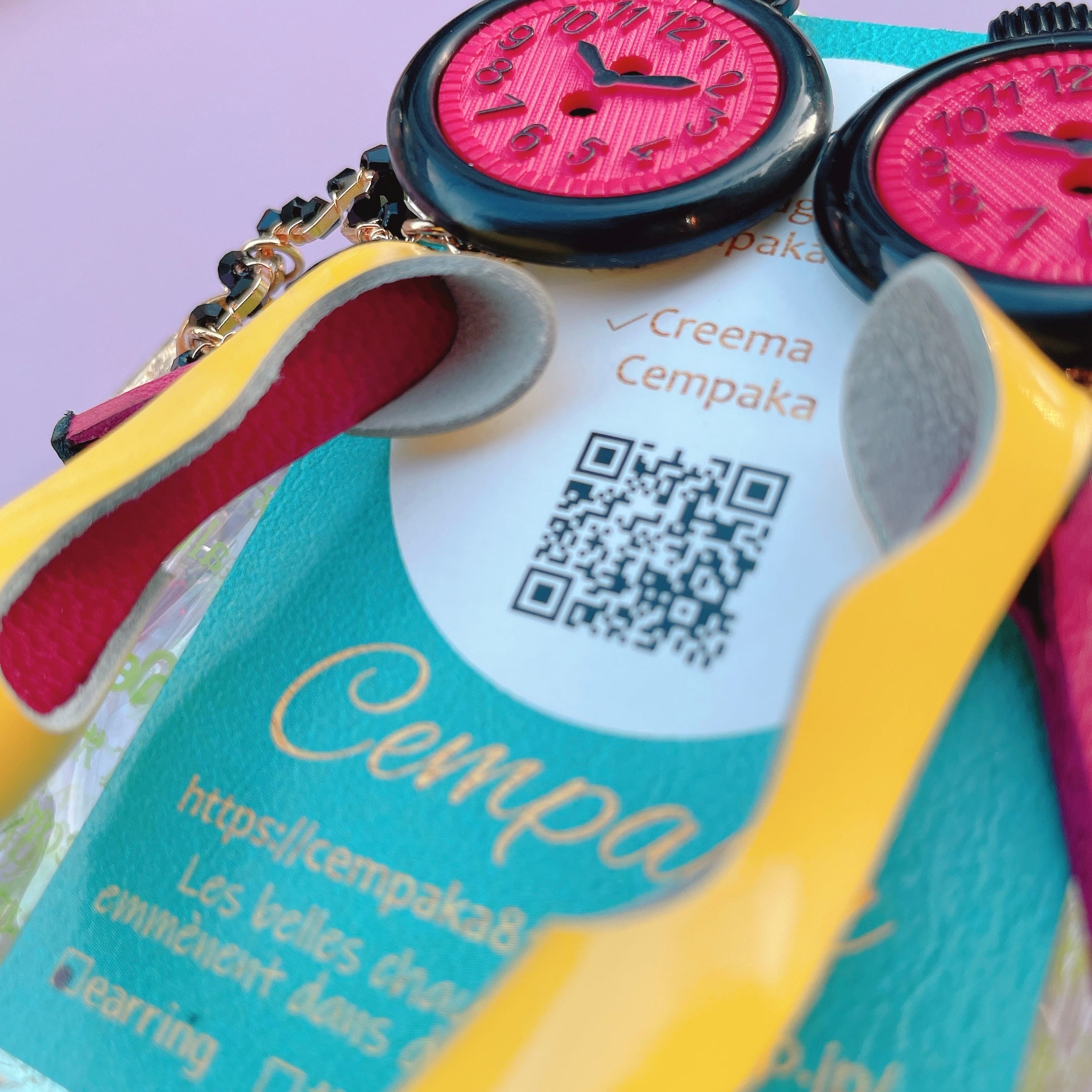 ハイヒールイヤリング 時計ボタン黄色 【cempaka】
