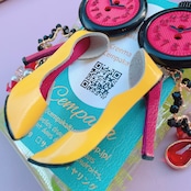 色んな模様のハイヒールに、賑やかな楽しいパーツ、海外のボタンなどで組み合わせられた、一点ものになります。