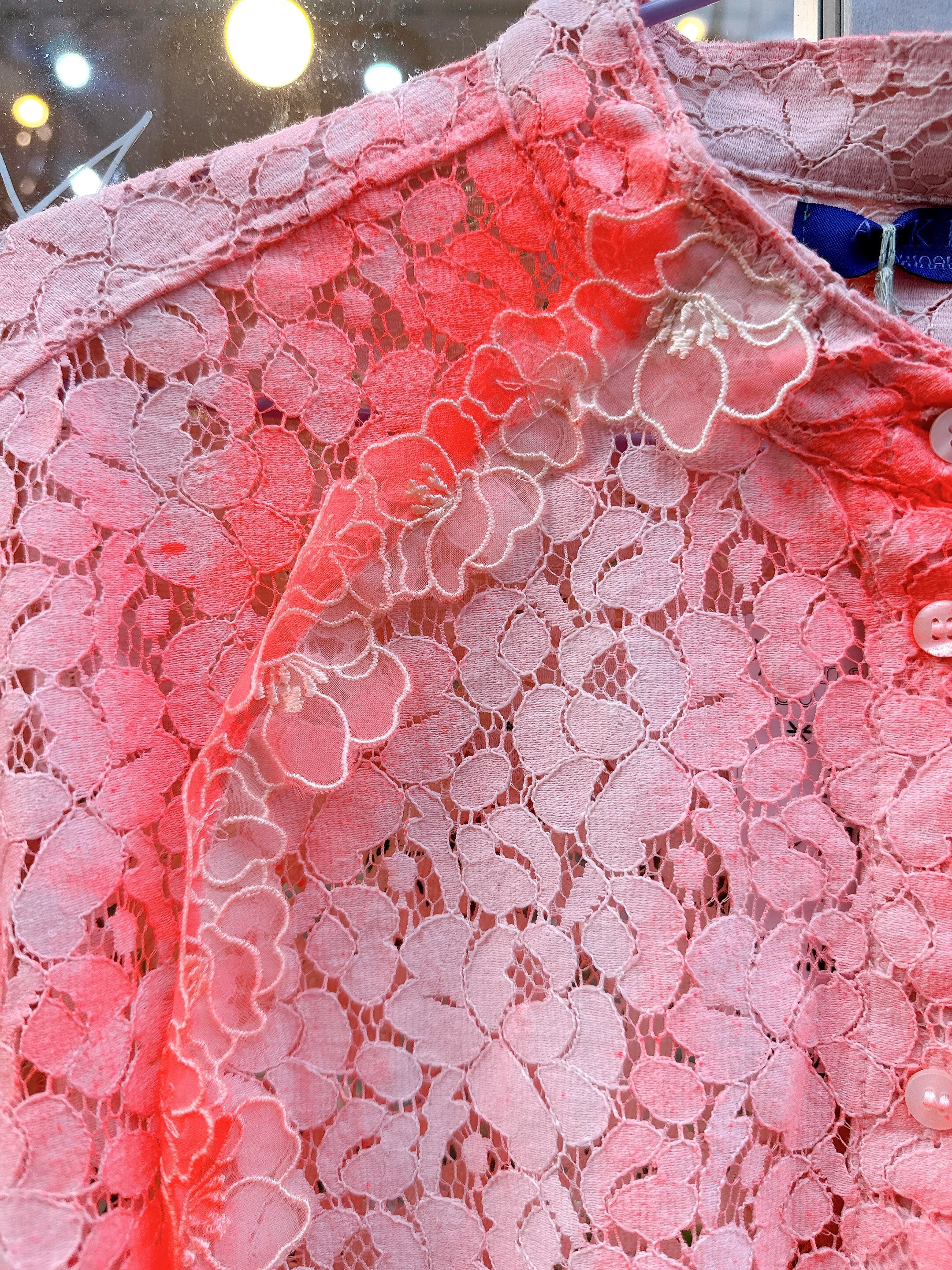 ドイリーミィなカラーリングにあえて、ボトムスをデニムなどでカジュアルダウンにしたり、、派手スカートなどと合わせて、個性たっぷりのコーデにしてもらっても。