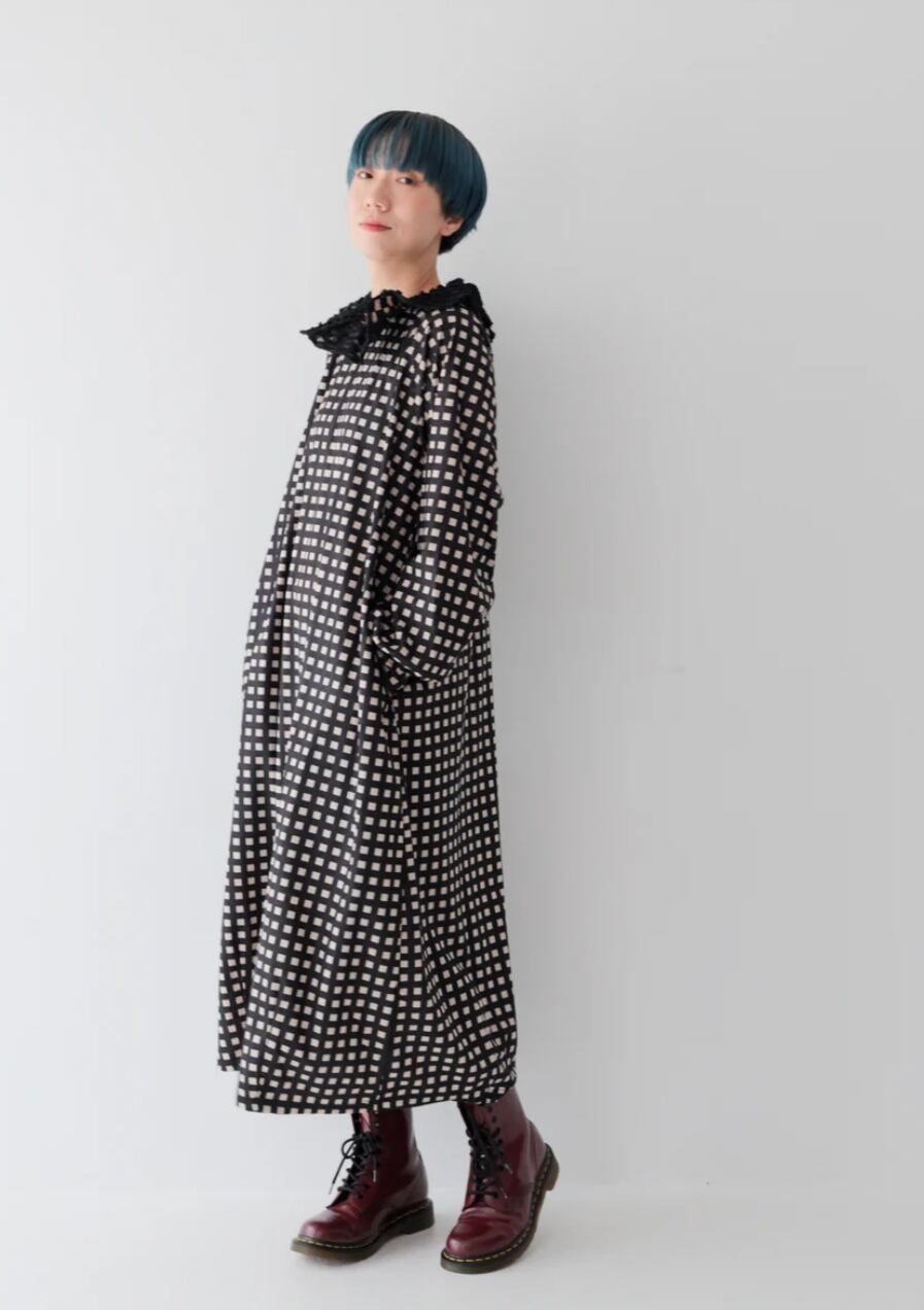 着るだけで主役級のインパクトがある、チェックの生地をたっぷりと使ったワンピースです。