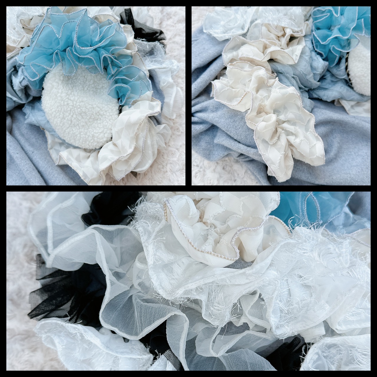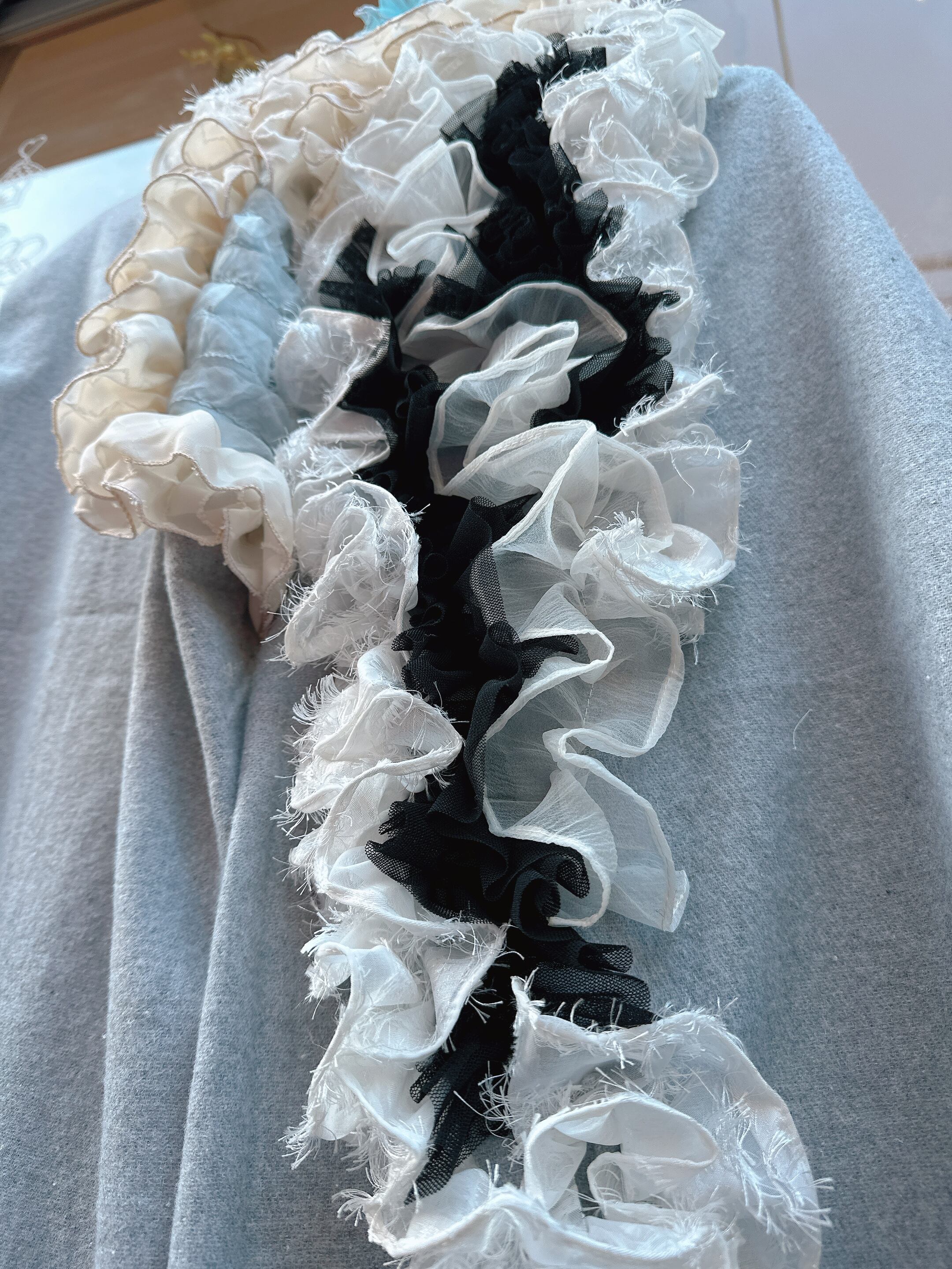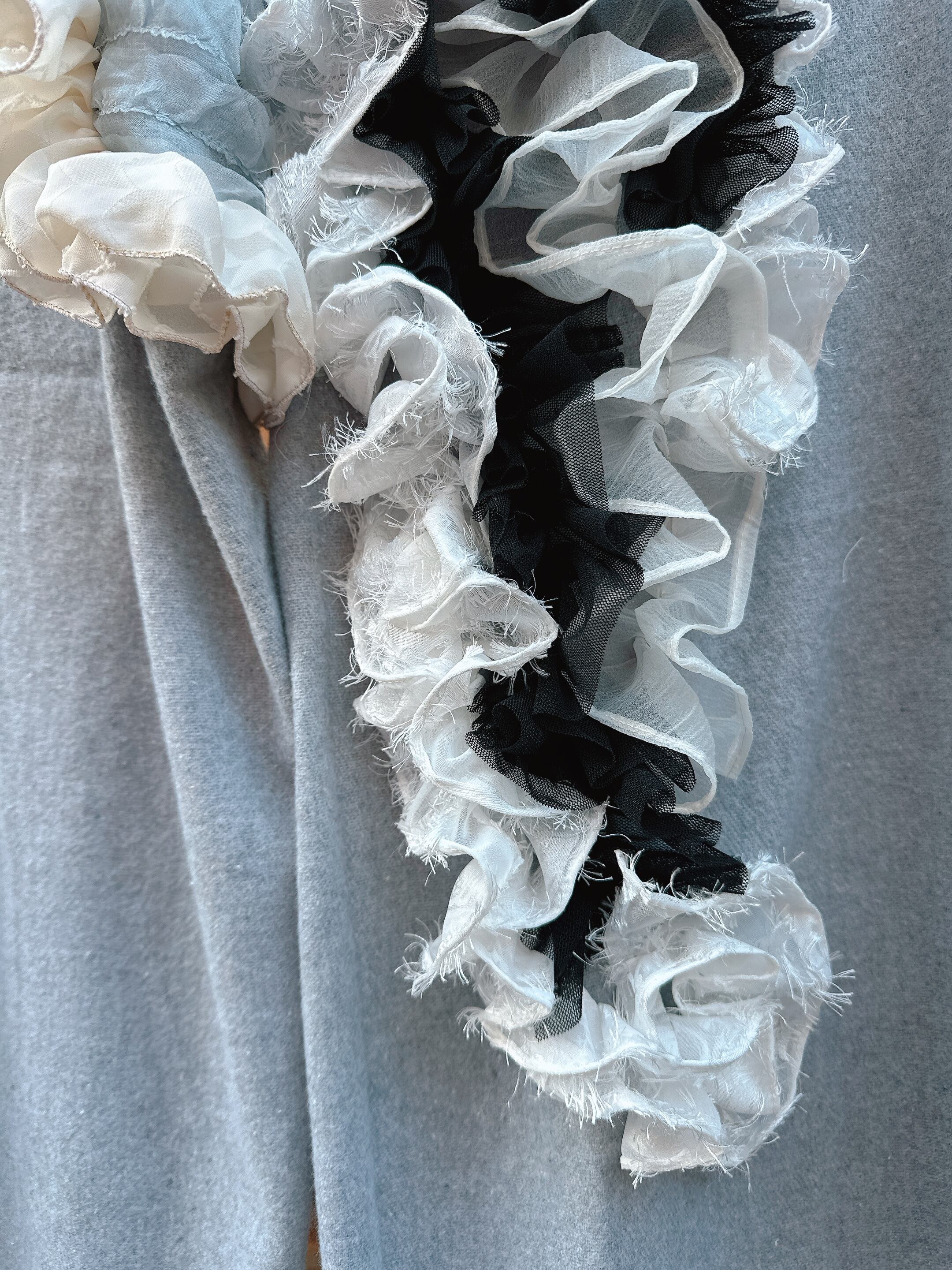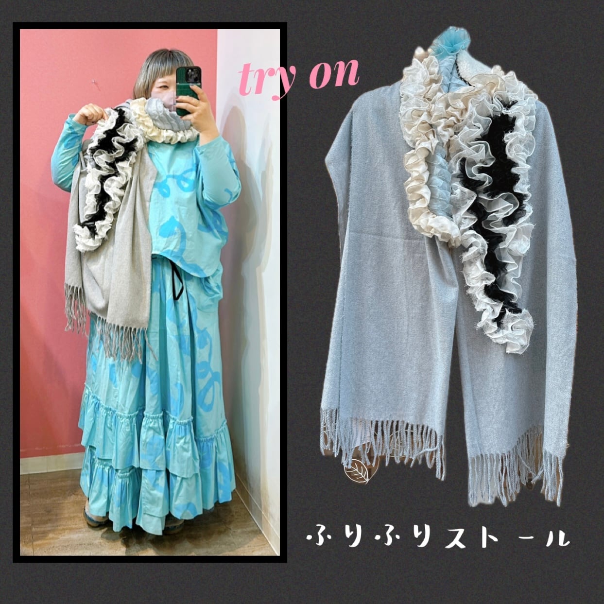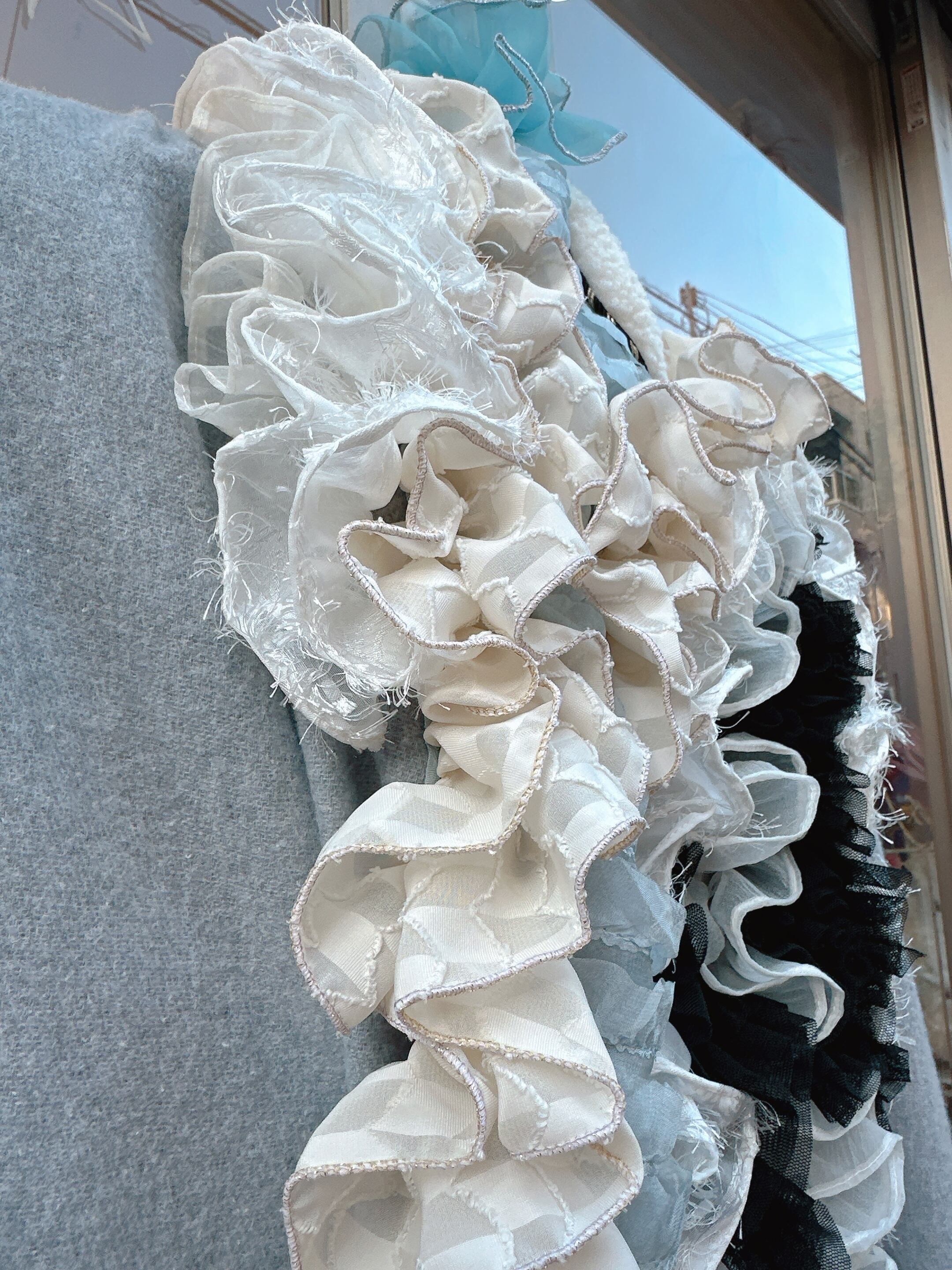 ハンドメイドふりふり大判ストール グレー【capri bird】
