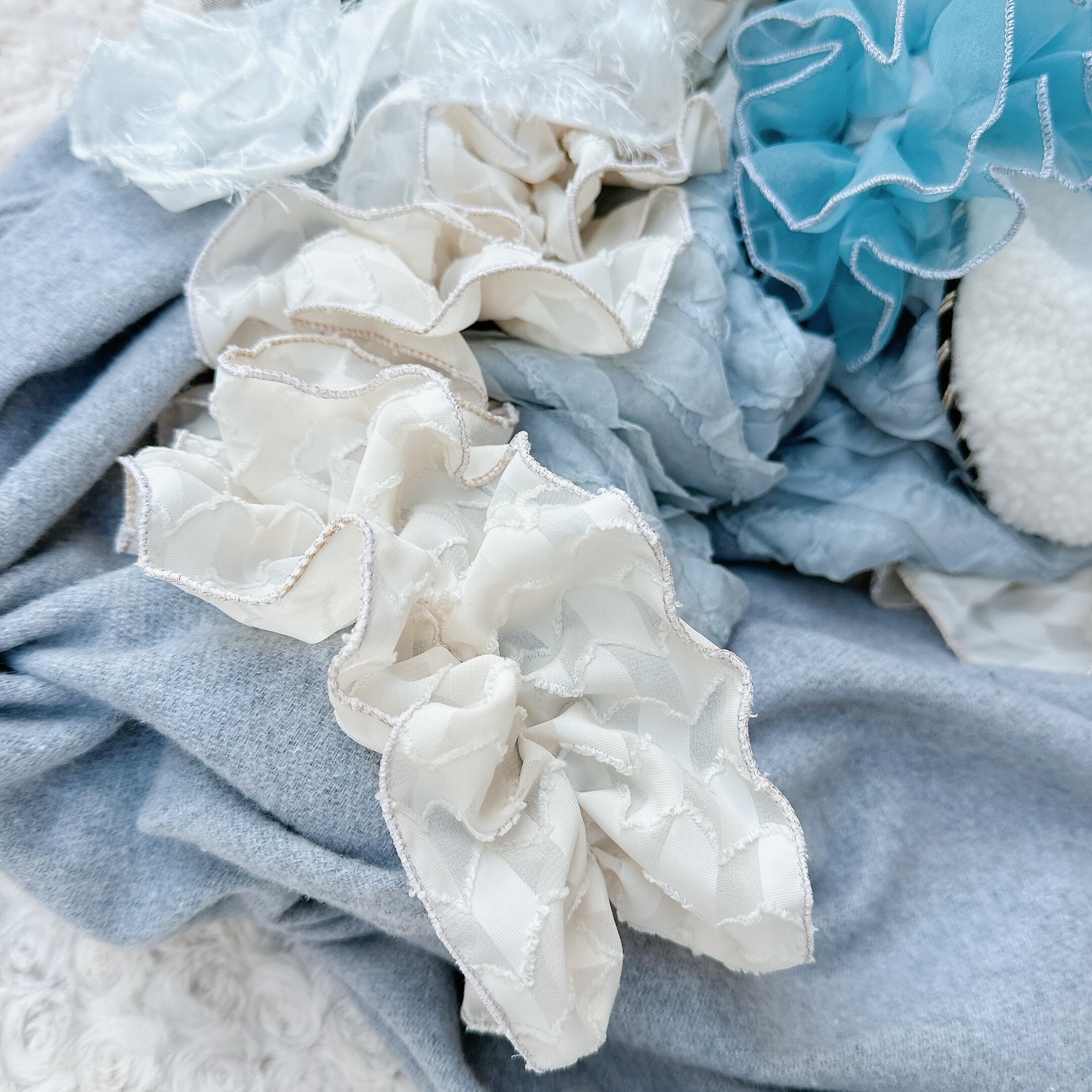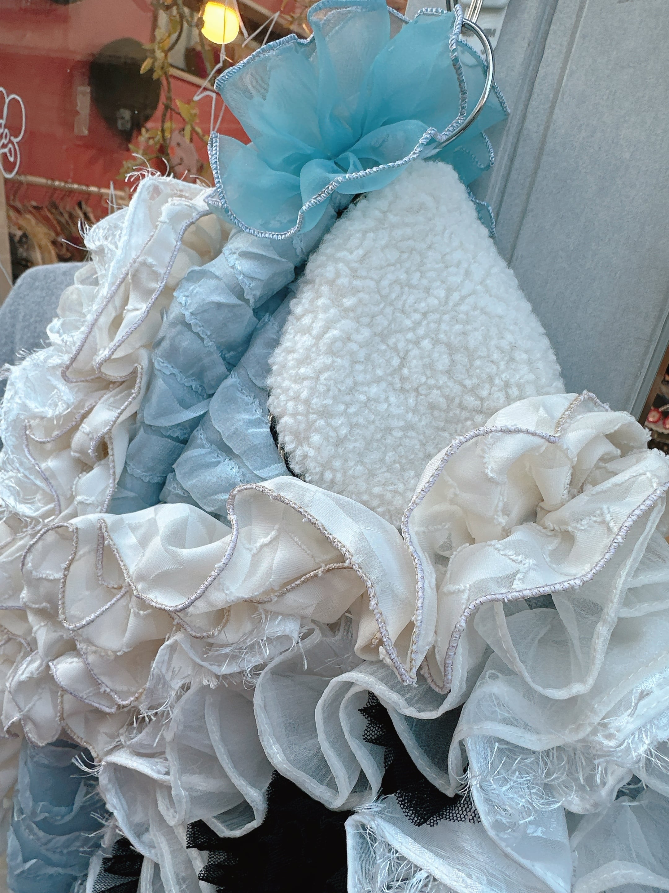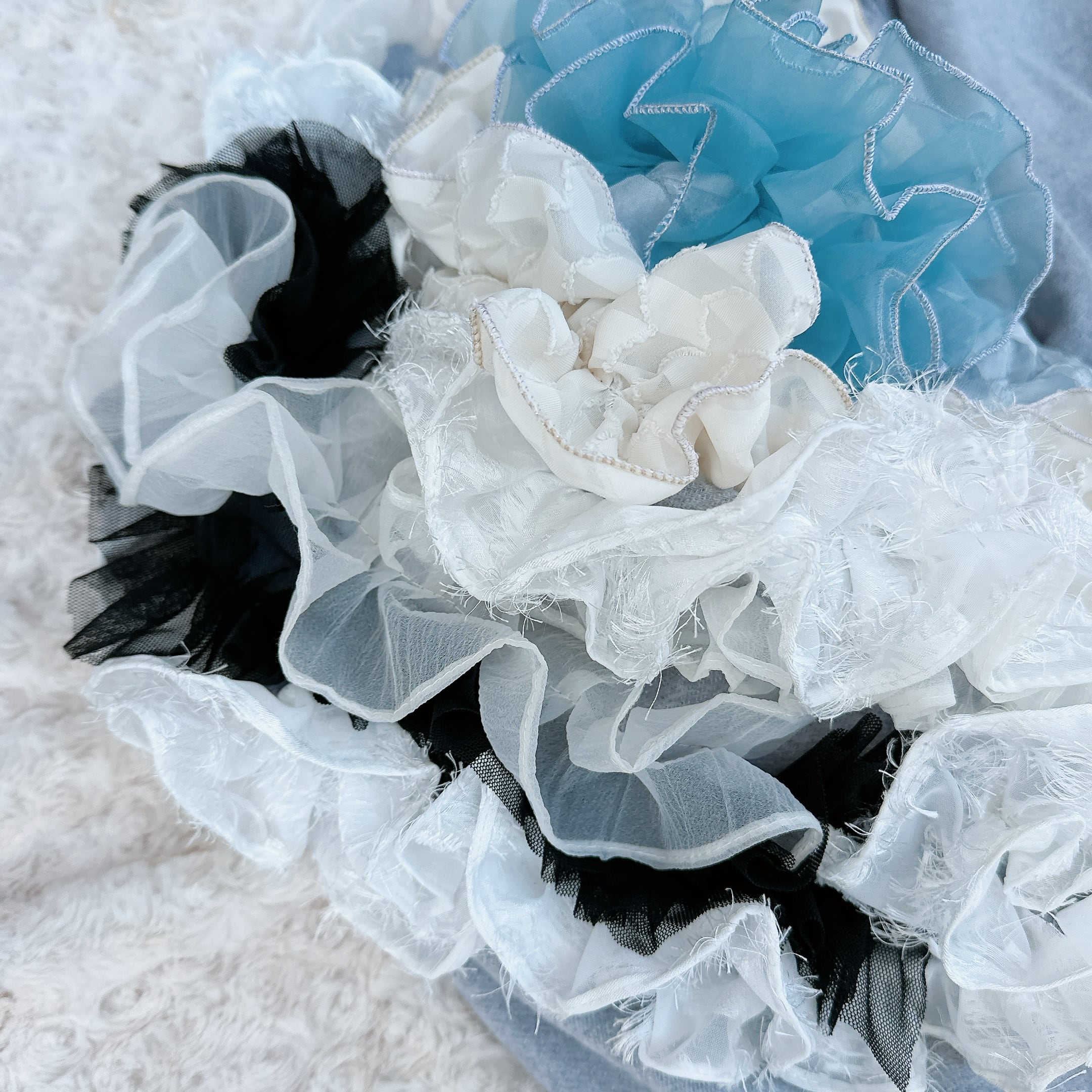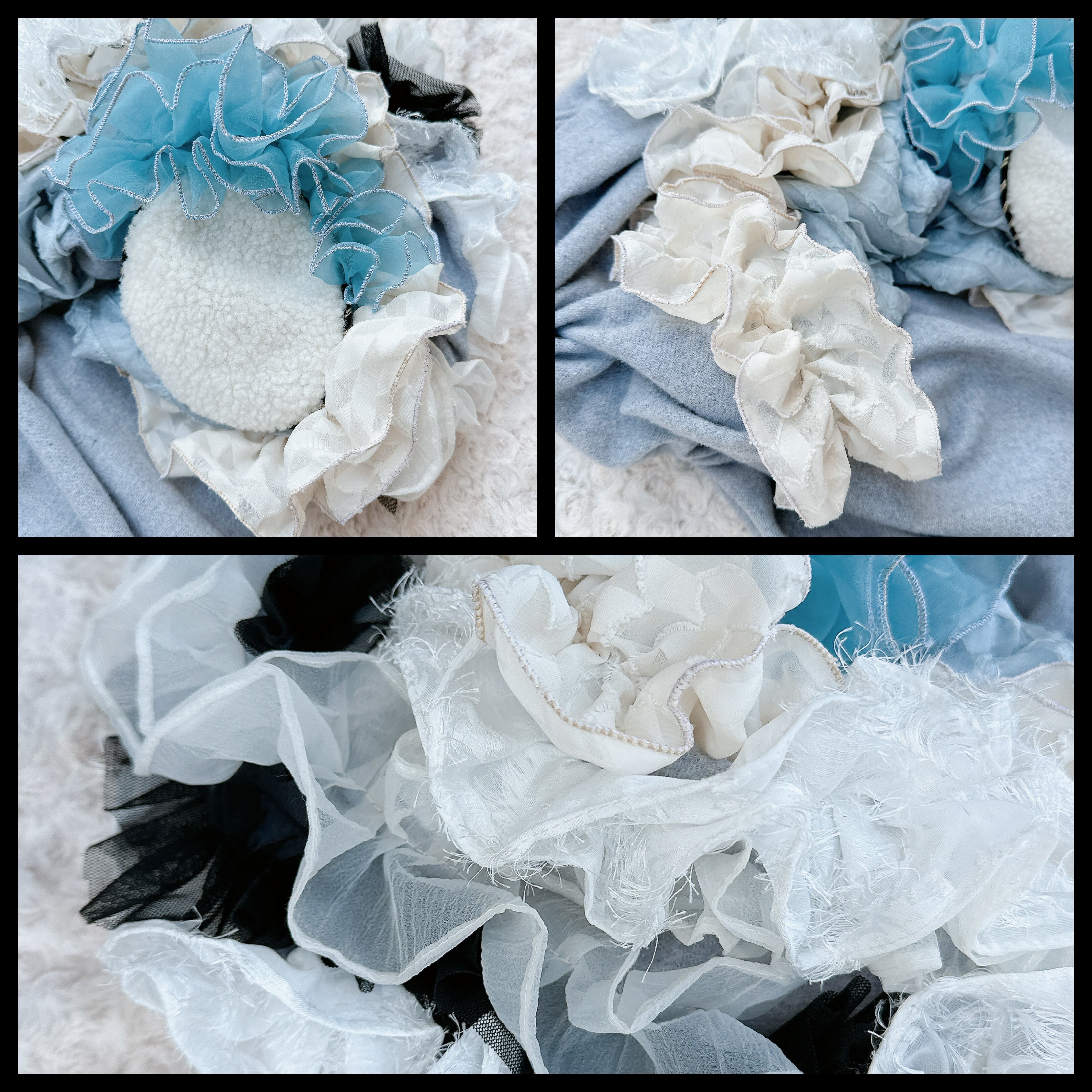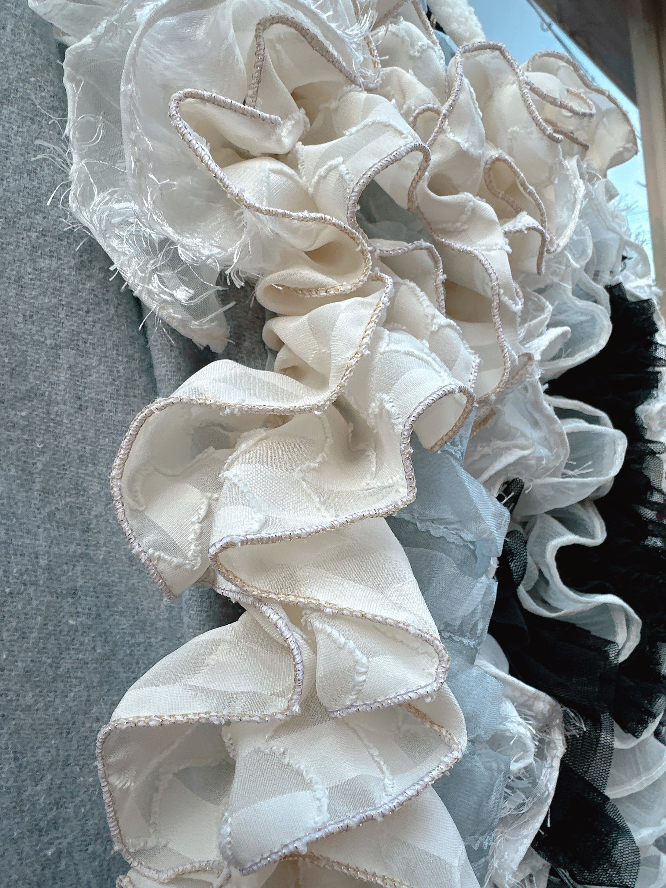 ハンドメイドふりふり大判ストール グレー【capri bird】